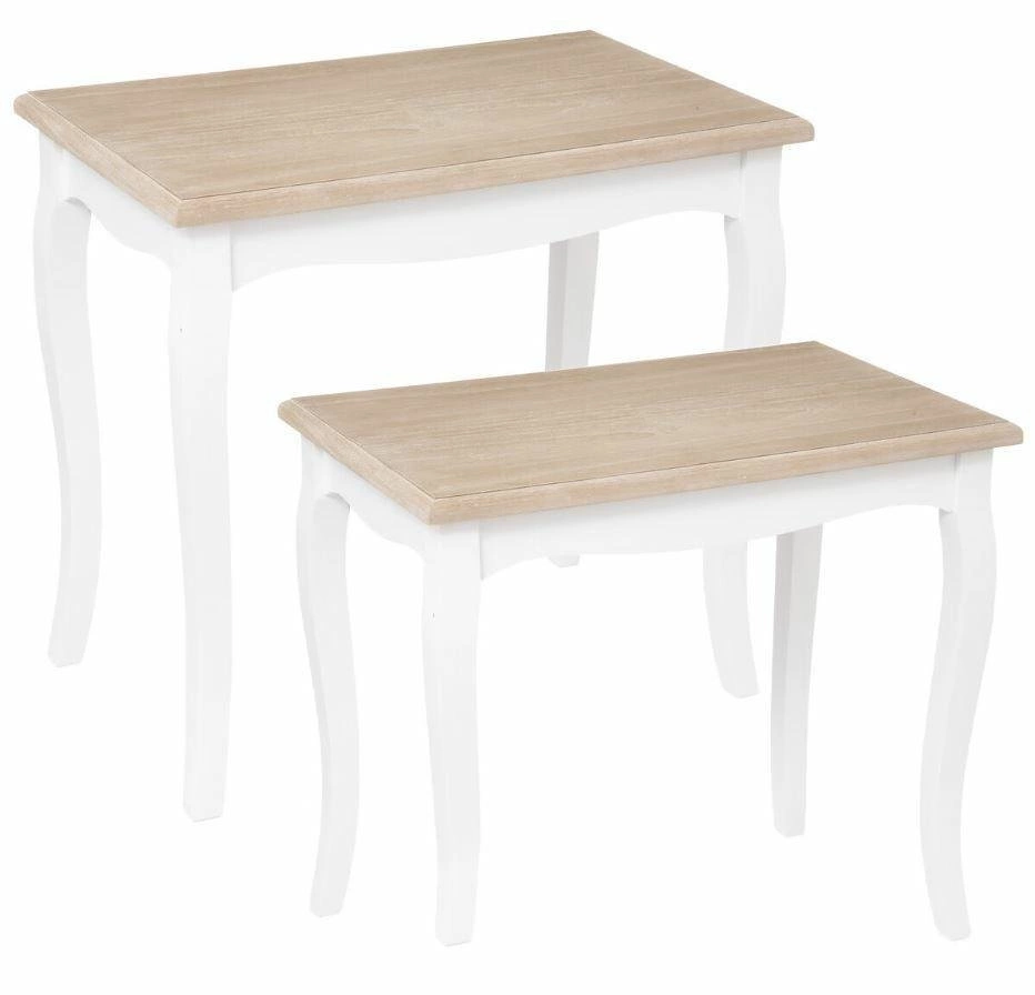 - Praktyczny zestaw 2 stolików – większy i mniejszy, które możesz ustawiać razem lub osobno, dostosowując do potrzeb domowników.