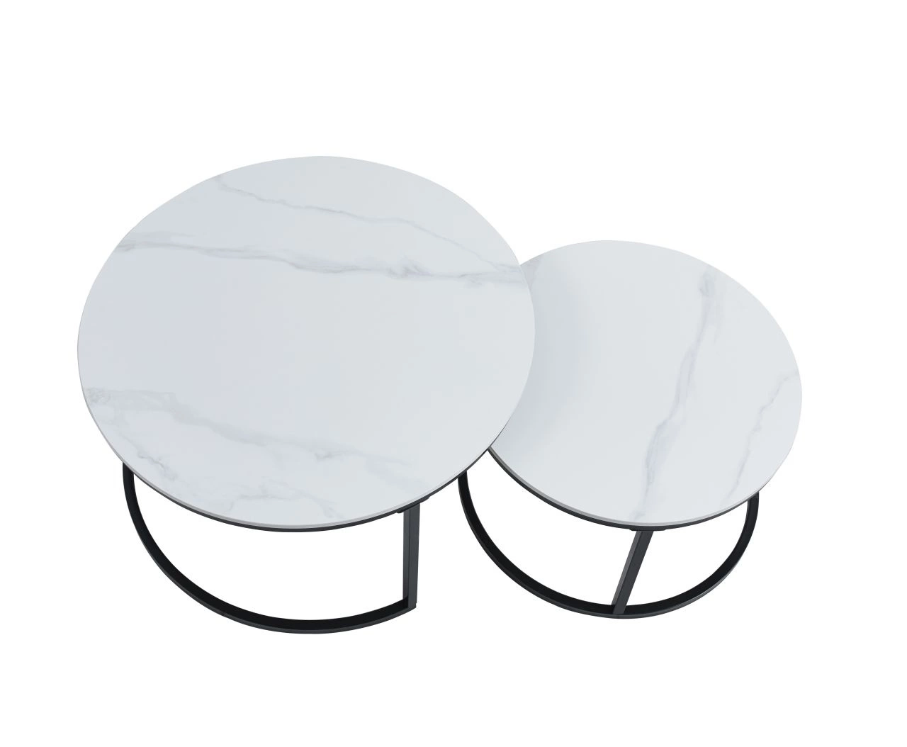 Blaty wykonane z ceramiki imitującej biały marmur dodają im wyrafinowanego charakteru, jednocześnie będąc łatwymi w utrzymaniu czystości. Nogi stolików wykonane z metalu malowanego proszkowo w kolorze czarnym zapewniają stabilność i trwałość.