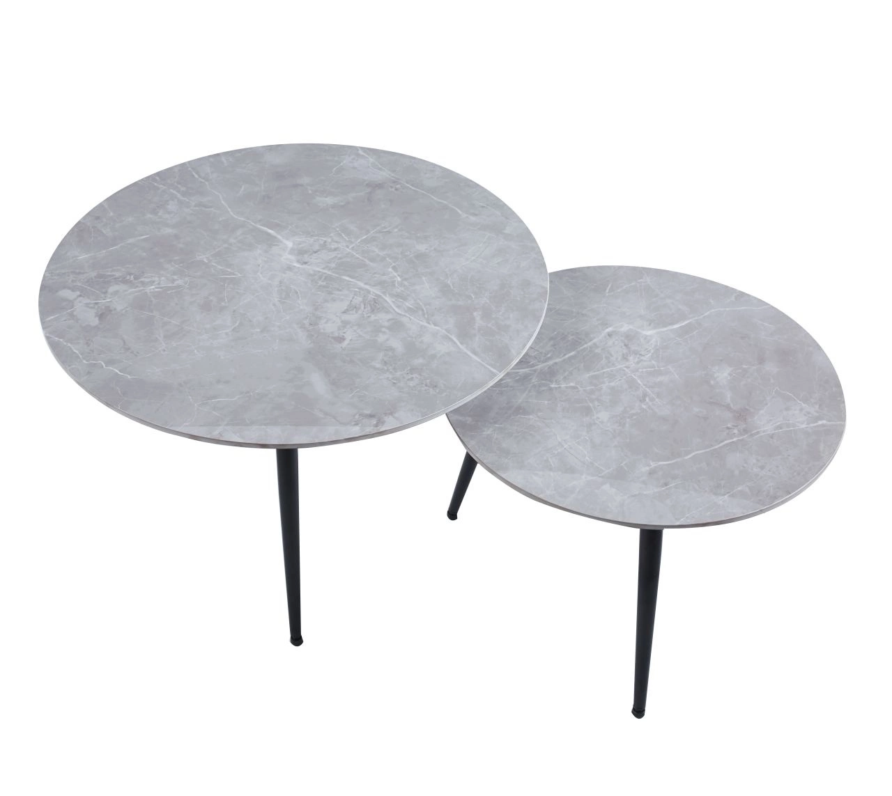 Nogi stolików wykonane z metalu malowanego proszkowo w czarnym kolorze zapewniają stabilność i wytrzymałość, co sprawia, że meble są nie tylko estetyczne, ale również solidne. Dzięki różnym rozmiarom blatów, stoliki można dowolnie zestawiać i aranżować, co daje możliwość dostosowania ich do indywidualnych potrzeb i preferencji.