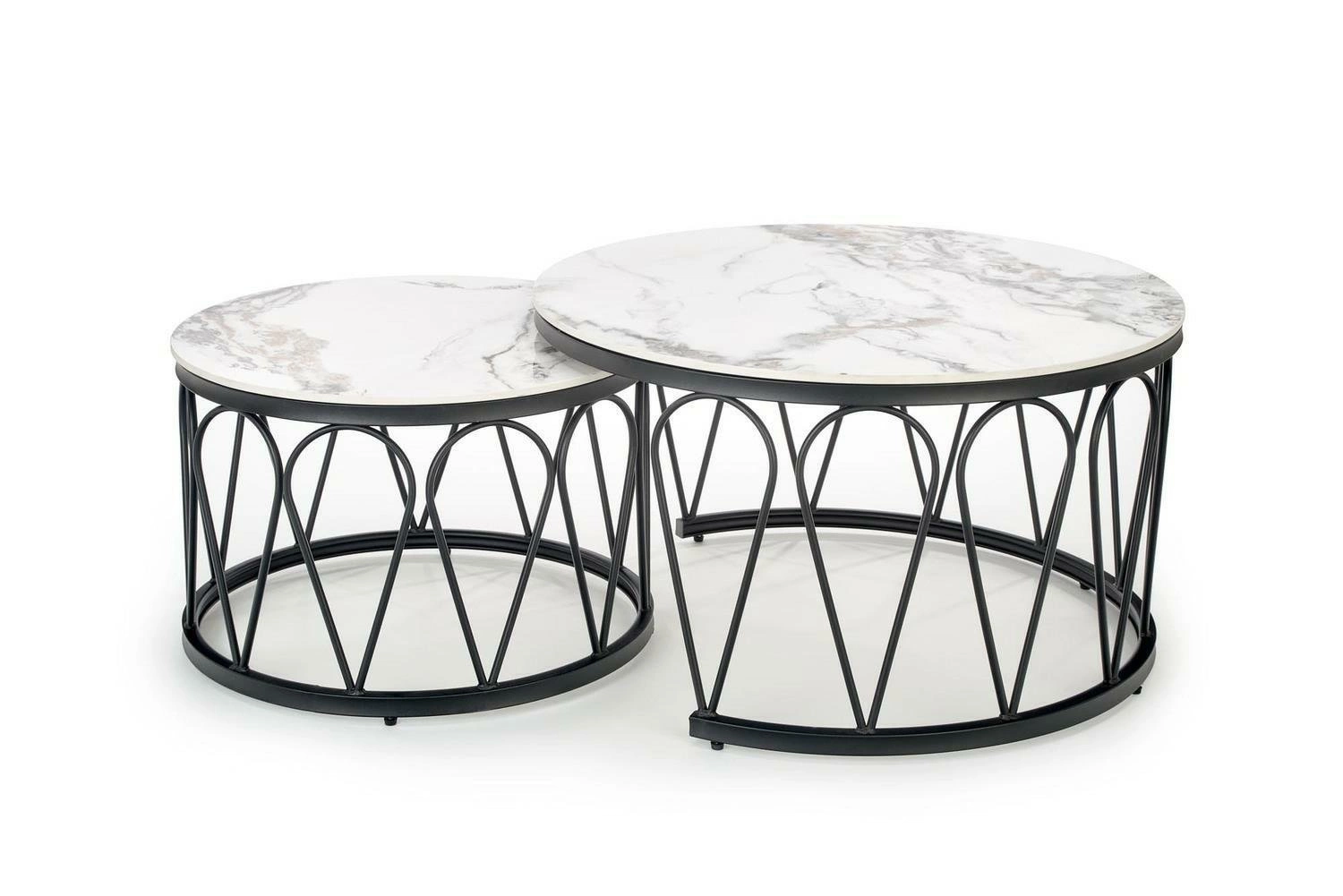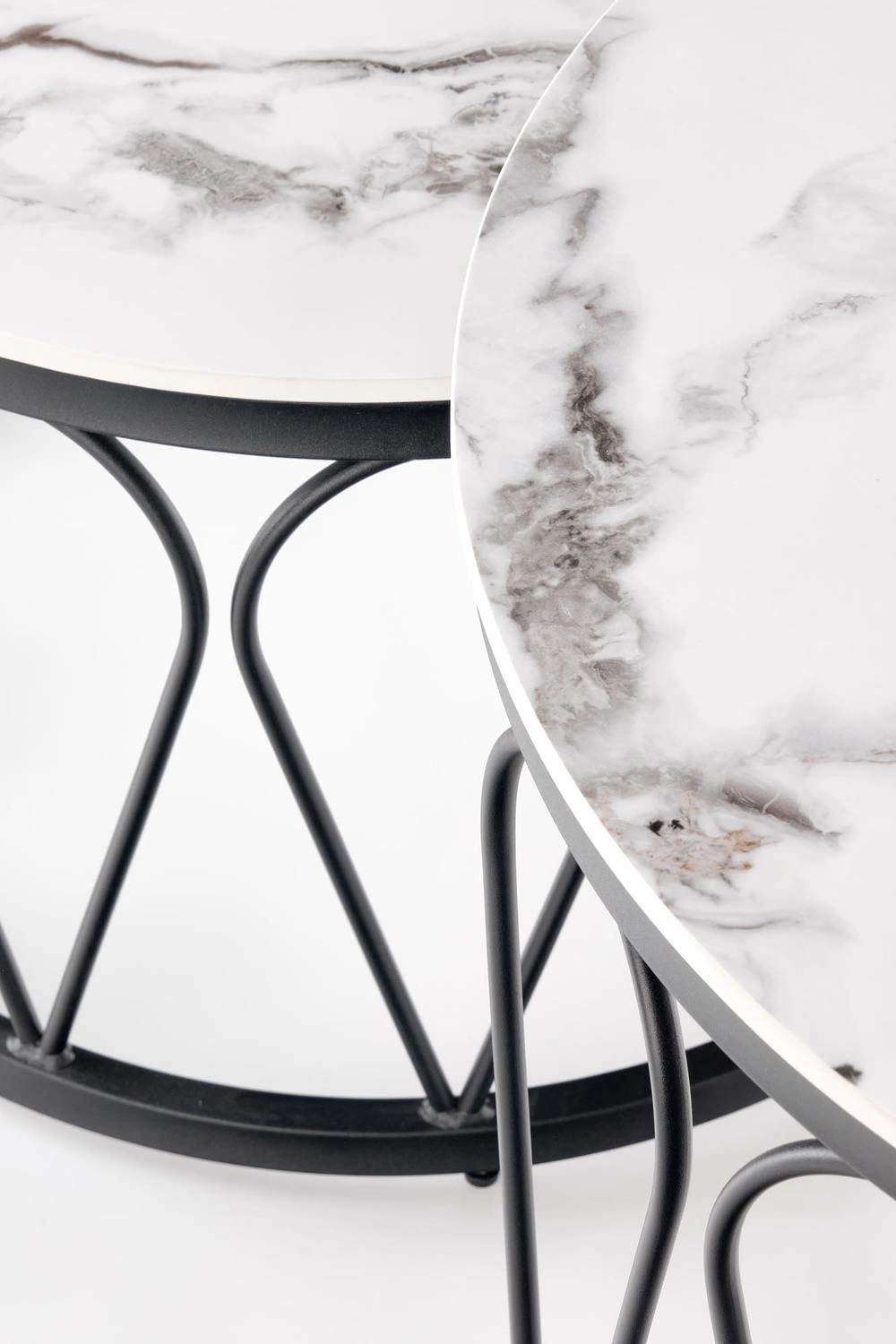 Kolor biały marmur stolików dodaje wnętrzu elegancji i klasy, a czarny stelaż stanowi idealne uzupełnienie ich wyglądu. Zestaw 2 stolików kawowych to idealne rozwiązanie dla osób ceniących sobie styl, elegancję i funkcjonalność w swoim wnętrzu. Dzięki nim, każda kawa lub herbata będzie smakować jeszcze lepiej, a goście będą pod wrażeniem pięknego wyglądu stolików.