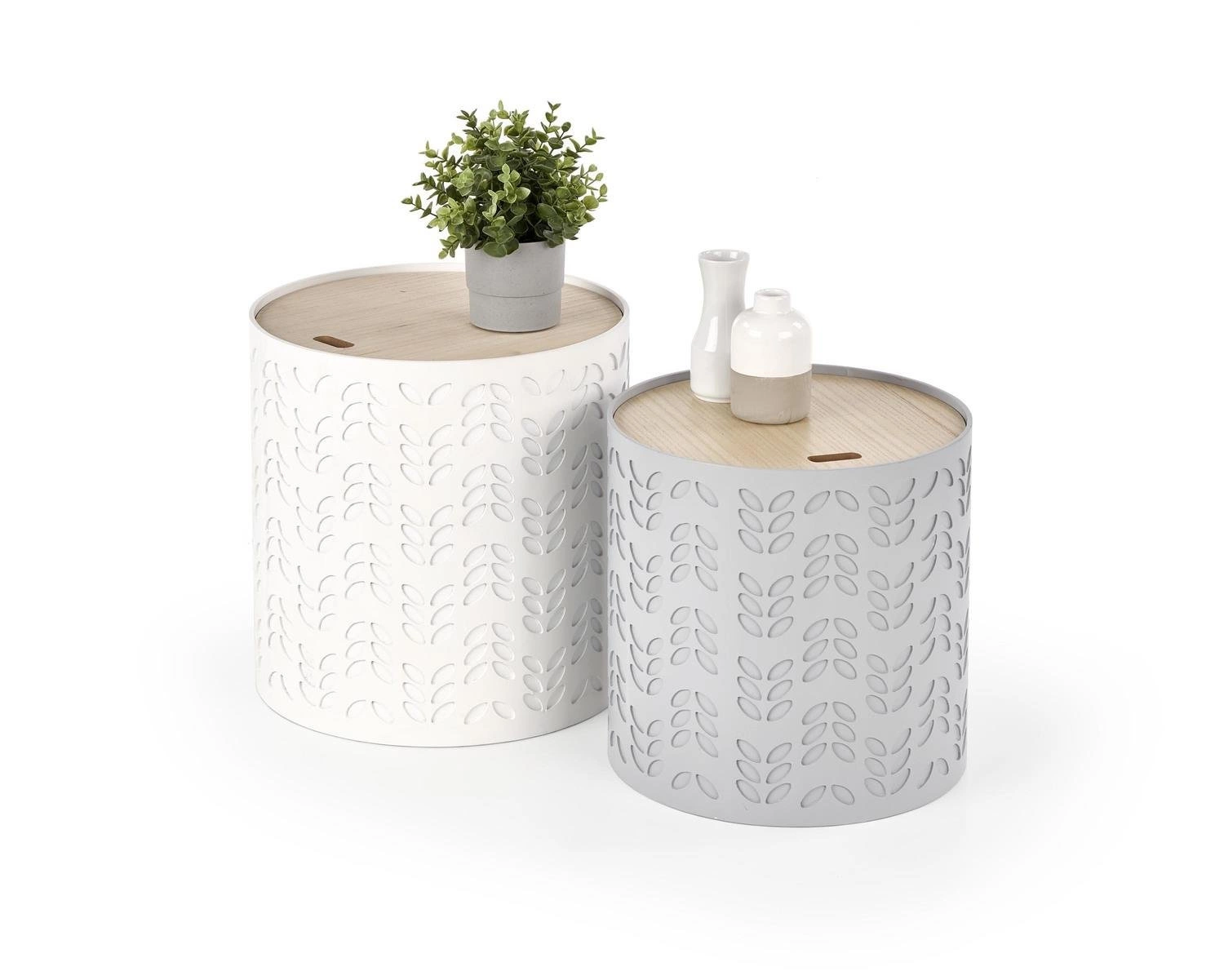 Stoliki kawowe Lamba idealnie wpisują się w potrzeby nowoczesnych wnętrz – ich minimalistyczna forma i biało-szara kolorystyka doskonale współgrają zarówno z aranżacjami w stylu skandynawskim, loftowym, jak i industrialnym. Dzięki swojej kompaktowej formie (średnica 39 cm, wysokość 40 cm) zestaw sprawdzi się nawet w niewielkich salonach, oferując wygodną przestrzeń na kawę, przekąski czy dekoracje.Funkcjonalność i wygoda na co dzień