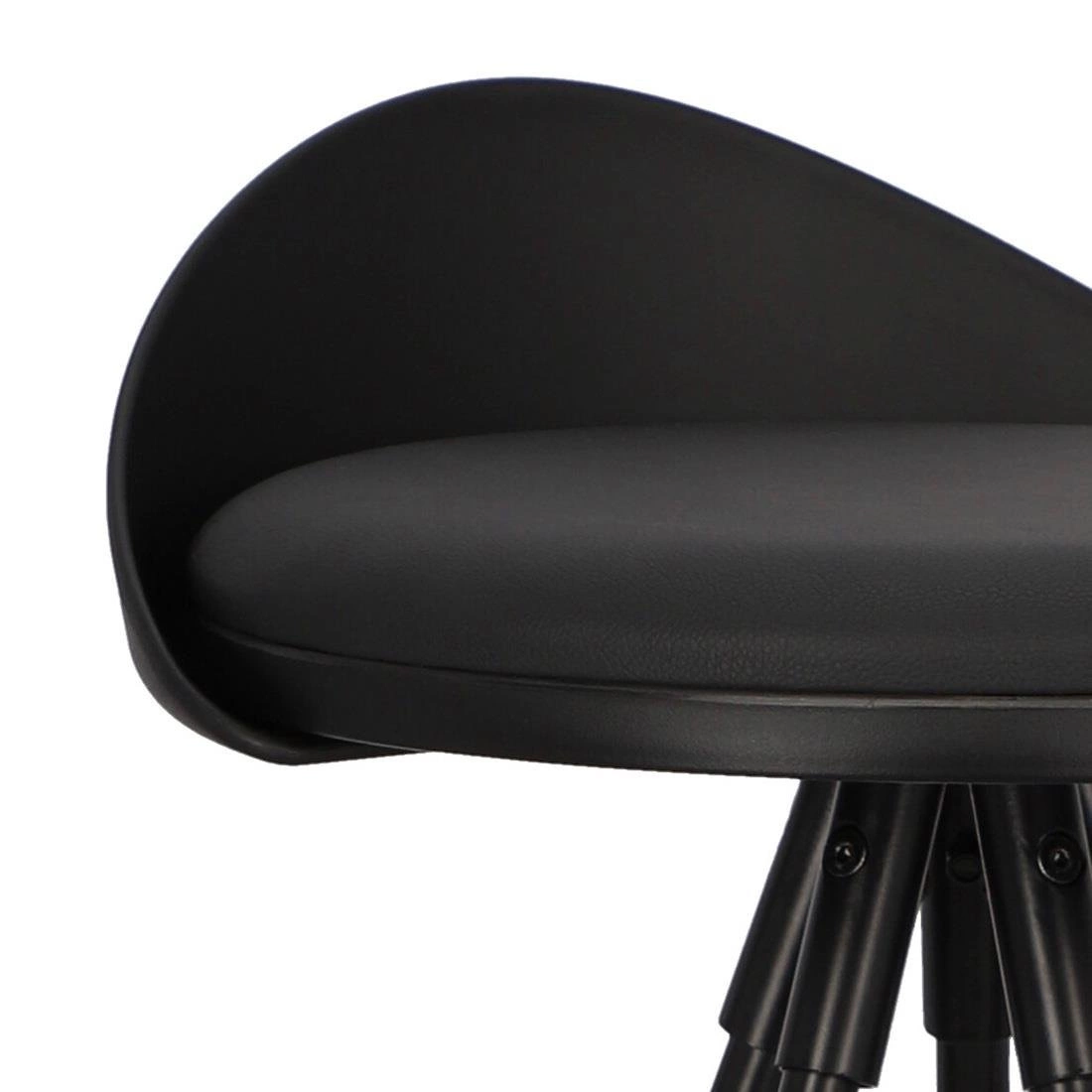 Metalowa podstawa Nagzari składa się z 5 nóg, które schodzą się w jedno miejsce w centralnej części siedziska, gwarantują wygodę oraz stabilizację mebla. Dodatkowo spód nóżek zabezpieczony został specjalnymi nakładkami, tak by mebel nie ryzował podłogi. Siedzisko o okrągłym kształcie wykończone zostało miękką poduszką wypełnioną pianką tapicerską. Hoker zapewni ci wygodny i komfortowy spoczynek. Tkanina, jakiej użyto do obicia poduszki to skóra ekologiczna o półmatowym wykończeniu w kolorze głębokiej czerni. Poduszki nie można zdjąć, ale dzięki wykończeniu jej ekoskórą jest ona łatwa w czyszczeniu. Ciekawym elementem hokera jest niskie oparcie z tworzywa. Niewątpliwie dużą zaletę Nagzari stanowi podpórka na nogi, która poprawi komfort użytkowania.