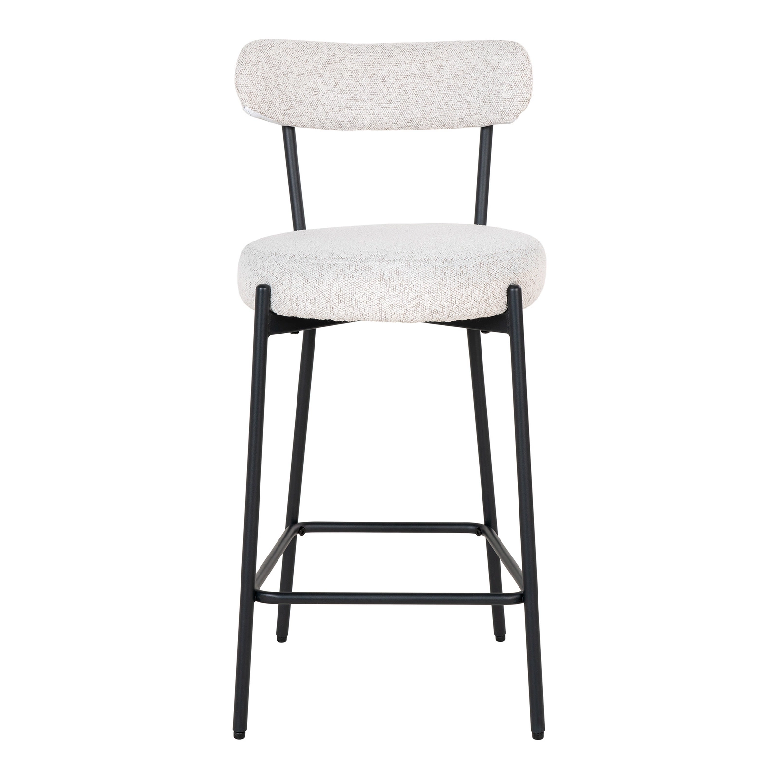 Podkreśl swoją miłość do nowoczesnego designu, wybierając hoker Badalona boucle. Wykonany z połączenia stali, poliestru i sklejki, ten mebel zachwyca swoją estetyką i funkcjonalnością. Jego tapicerka w stylu boucle, wykonana w 100% z poliestru, łączy w sobie przytulność i modny wygląd. Czarne metalowe nogi dodają mu elegancji, a wysokość siedziska wynosząca 65 cm sprawia, że jest idealny do barów, kuchni czy jadalni. Dzięki swojej uniwersalnej kolorystyce - białej tapicerki i czarnych nóg - hoker ten doskonale wpasuje się w różne style aranżacji.