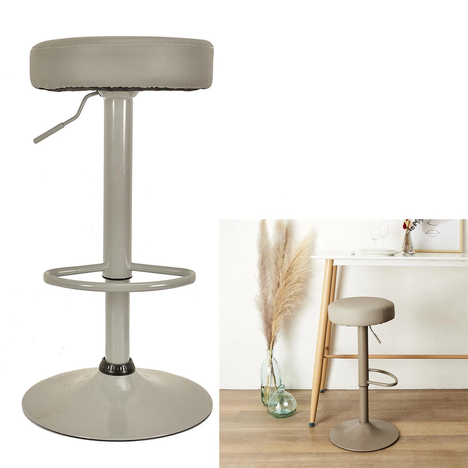 - Wygodne siedzisko z tkaniną z ekoskóry zapewnia komfort podczas użytkowania hokera