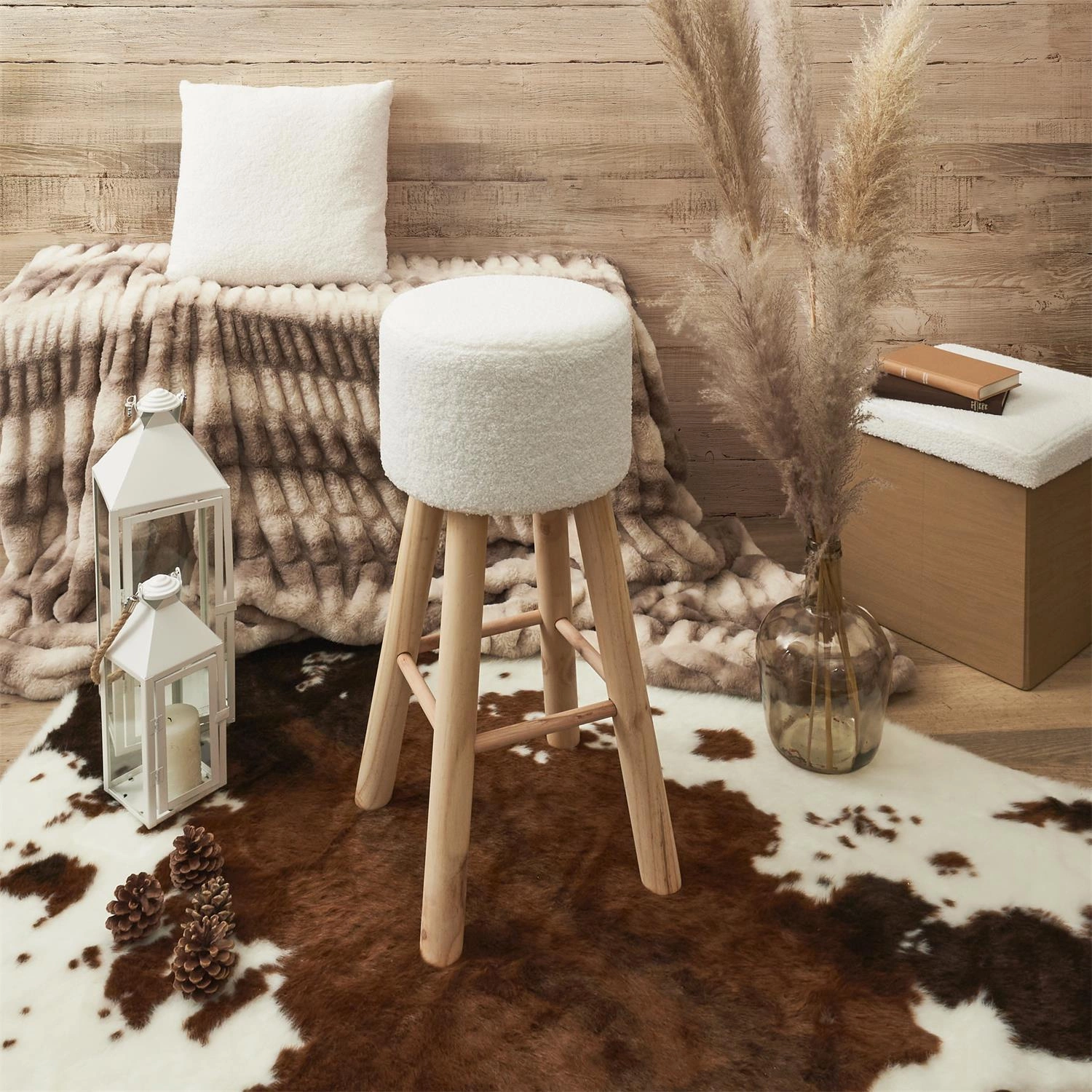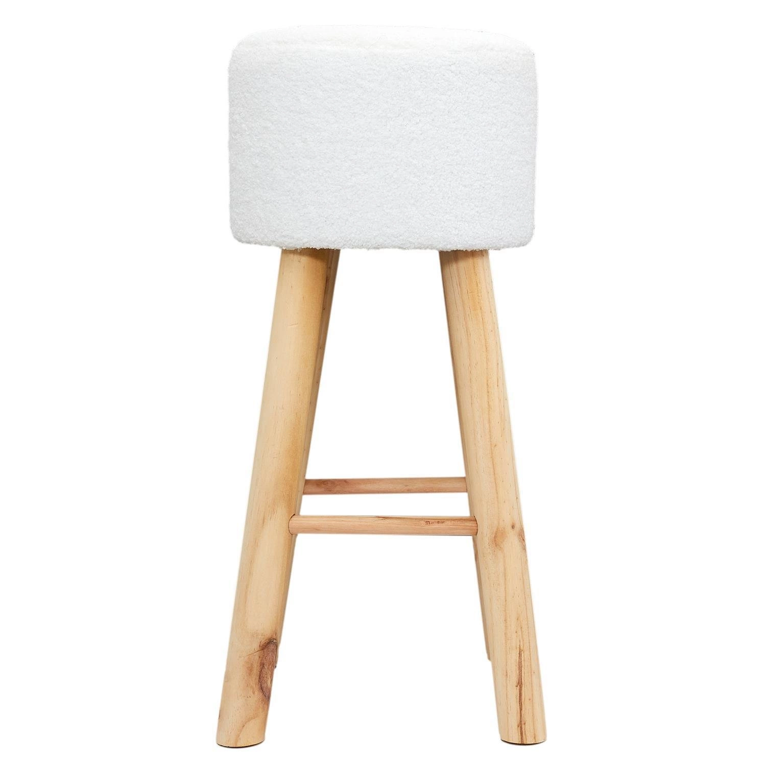 Stołek barowy Freya z drewnianymi, sosnowymi nogami i białym siedziskiem z miękkiej, gęsto tkanej tkaniny zachwyci tych, którzy lubią otaczać się meblami nawiązującymi do natury. Wysoki stołek posiada cylindryczne siedzisko o średnicy 30 cm, które osadzone jest na czterech drewnianych, olejowanych nogach. A co lepsze! Hoker nie wymaga montażu, także już w sekundę możesz cieszyć się jego obecnością!