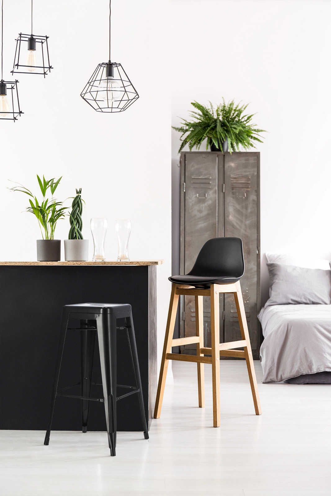 Śledząc aktualne trendy wnętrzarskie nie sposób przeoczyć stylu industrialnego lub jego nieco delikatniejszej odmiany typu loft. Charakterystyczne cechy pomieszczeń wzorowanych na tych przemysłowych to między innymi surowość wykończeń, oryginalne dodatki i przede wszystkim uzyskiwana, dzięki nim duża przestrzeń. Stołek barowy Paris idealnie oddaje istotę tego stylu. Konstrukcja mebla została wykonana w całości z wysokiej jakości stopu metalu. Siedzisko zostało polakierowane oraz pomalowane proszkowo na dostępną, elektryzującą kolorystykę. Dzięki takim zabiegom krzesło jest trwałe i odporne na uszkodzenia. Użycie metody proszkowej gwarantuje, że powierzchnia hokera jest jednolita i gładka. Aby zapobiec porysowaniu podłoża podczas przesuwania, hoker został zaopatrzony w nakładki ochronne z tworzywa na końcu nóg.