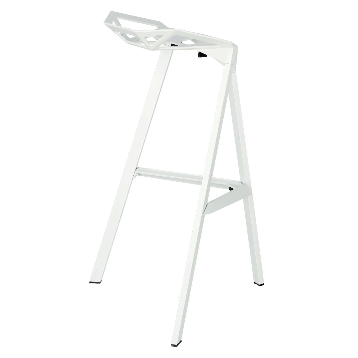 Jedną z głównych cech stołka Gap jest ażurowe siedzisko o geometrycznej formie. Dzięki niemu całość zyskuje wizualną lekkość.