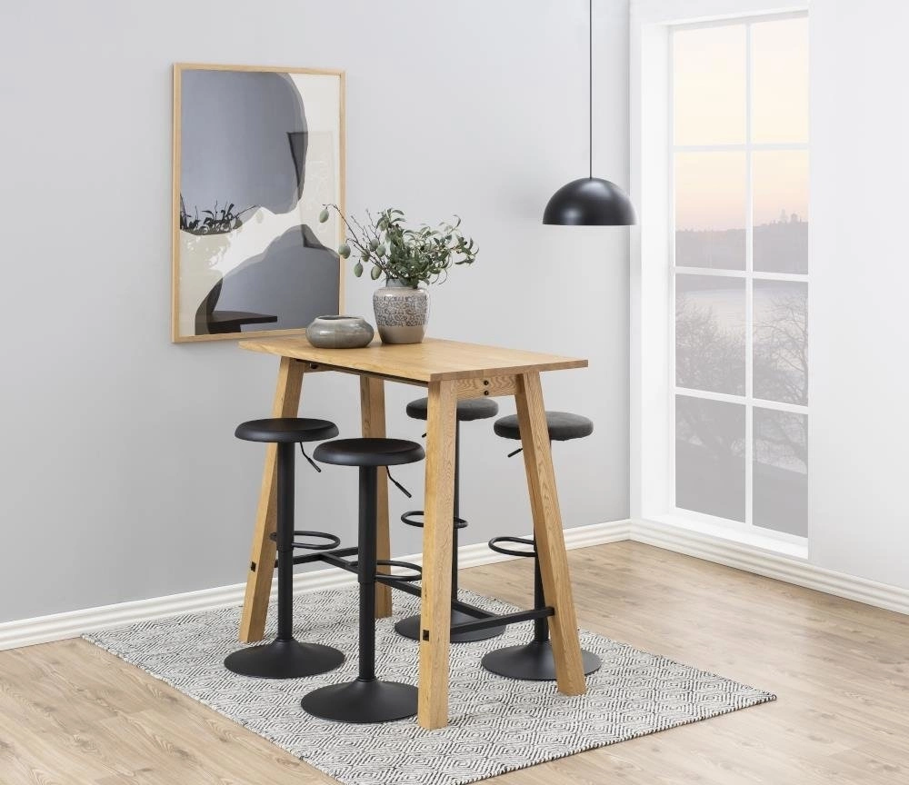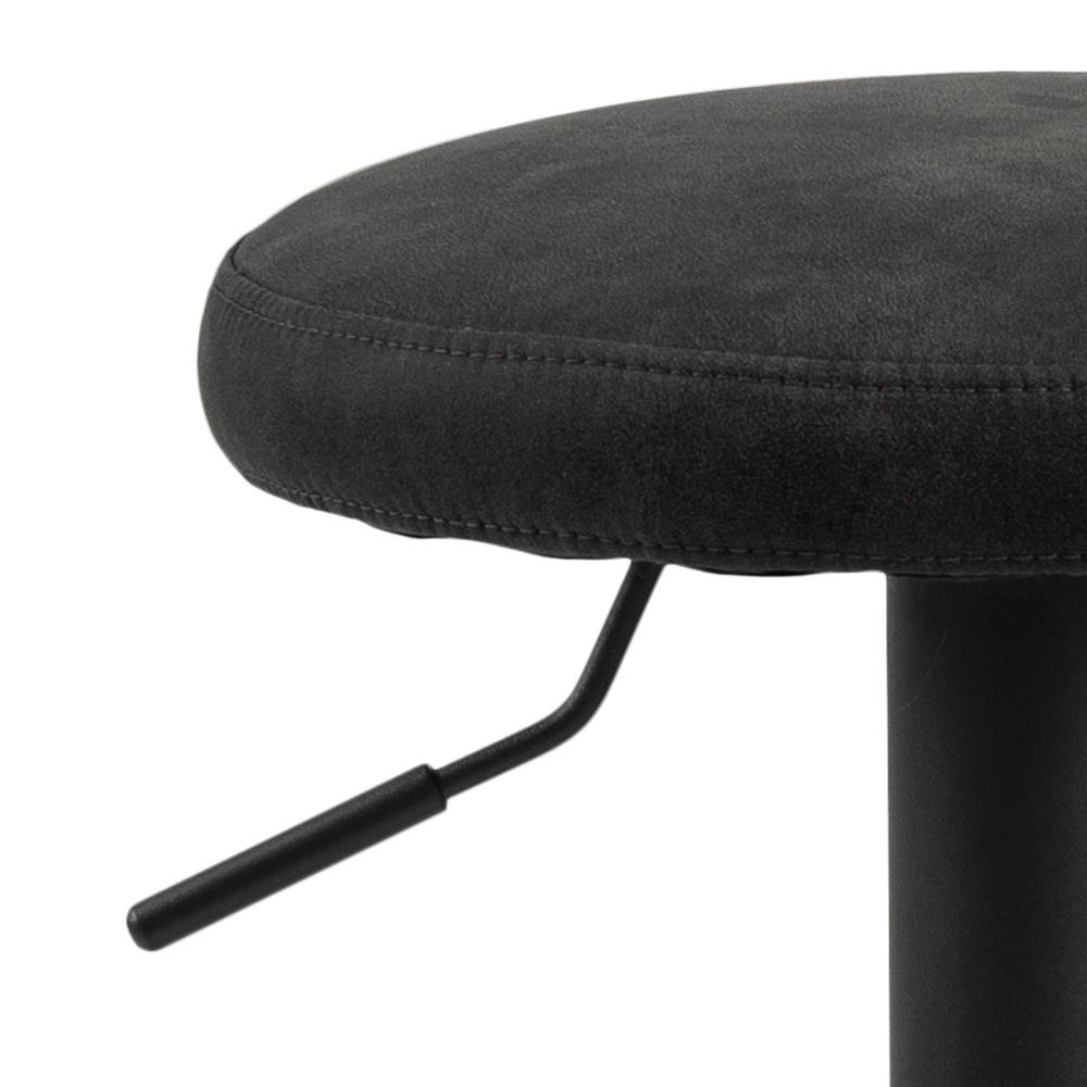 Stołek barowy Finch będzie idealnym siedziskiem przy kuchennej wyspie. Na metalowej, pomalowanej proszkowo na kolor czarny stopie, znajduje się siedzisko, które dla wygody obszyte zostało tkaniną w kolorze ciemnej szarości. Siedzisko wyposażono w mechanizm obrotowy oraz regulujący wysokość umożliwiający dopasowanie do postury użytkownika. Komfort z korzystania ze stołka barowego Finch dopełnia umiejscowiony na konstrukcji podstawy elegancki podnóżek. Minimalna wysokość stołka wynosi 62 cm, maksymalna 82 cm. Maksymalne obciążenie stołka wynosi 120 kg. Waga: 5,7 kg.