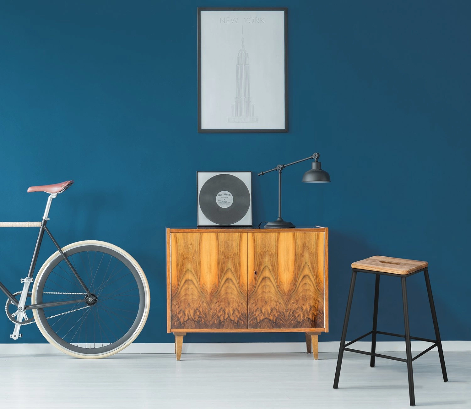Stołek barowy z sosnowym siedziskiem to idealne uzupełnienie jasnego wystroju w stylu skandynawskim. Naturalny hoker, stół barowy z grubym drewnianym blatem i lampa z plecionym kloszem to przepis na udaną aranżację w stylu scandi.