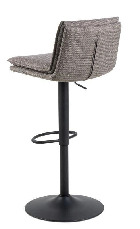 Stołek barowy Flynn posiada siedzisko i oparcie wypełnione pianką poliuretanową i tapicerowane tkaniną Basel. Jego atutem jest miękka, wygodna poduszka. Podstawa to jedna wysoka metalowa noga zakończona szerokim dyskiem. Stołek Flynn ma regulowaną wysokość (68-89 cm) oraz możliwość obracania.