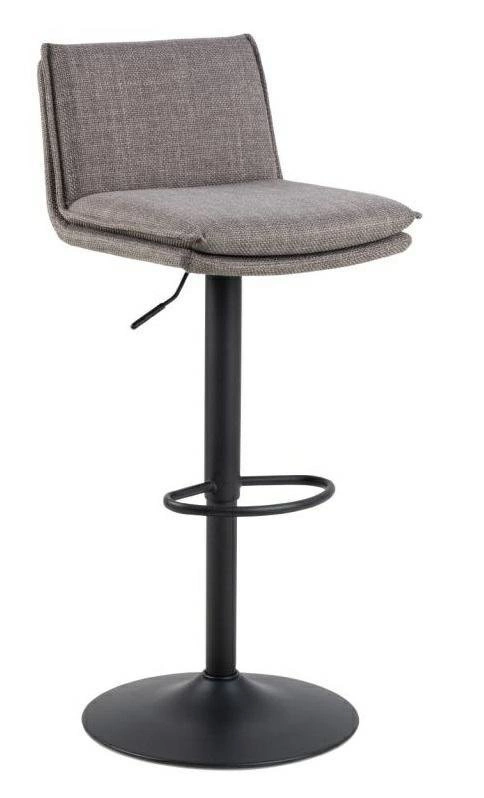 Stołek barowy Flynn posiada siedzisko i oparcie wypełnione pianką poliuretanową i tapicerowane tkaniną Basel. Jego atutem jest miękka, wygodna poduszka. Podstawa to jedna wysoka metalowa noga zakończona szerokim dyskiem. Stołek Flynn ma regulowaną wysokość (68-89 cm) oraz możliwość obracania.