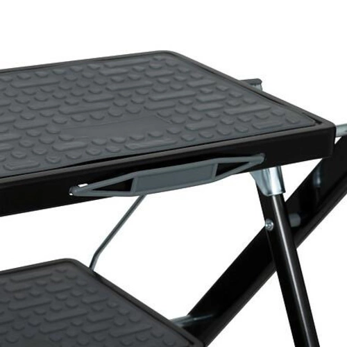 - Drabinka 2-stopniowa składana czarna to wytrzymałe i stabilne narzędzie o maksymalnym obciążeniu 150 kg.