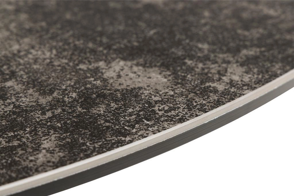Industrialny stół Heaven o pięknym blacie z marmurowym motywem oraz metalowej pomalowanej na czarno podstawie pozwoli na biesiadowanie w dużym gronie rodzinnym. Konstrukcja opiera się na metalowym stelażu o geometrycznej formie i zwieńczona jest blatem z marmuru w kolorze brązowym. Nogi zostały ustawione w taki sposób, by cała konstrukcja wykazała się dużą stabilnością. Ze względu na swój duży rozmiar, stół pomieści komfortowo nawet 6 osób. Wymiary opakowania: 128x128x6cm, 76x73x7cm