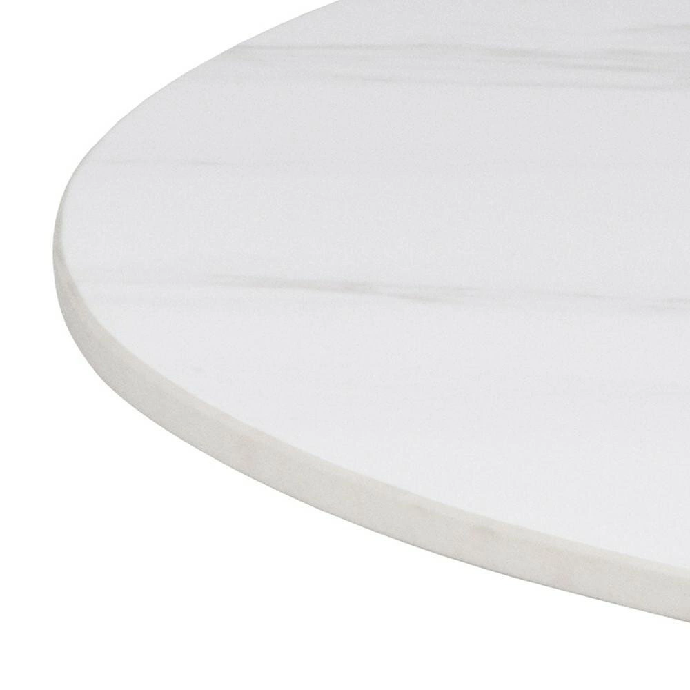 Blat stołu wykonany jest z ceramiki, która jest niezwykle wytrzymała i odporna na zarysowania. Dzięki temu stół Malta będzie służył przez długie lata, nie tracąc przy tym swojego pierwotnego wyglądu. Podstawa stołu wykonana jest z białej stali malowanej proszkowo, co zapewnia mu stabilność i bezpieczeństwo podczas użytkowania. Stalowa podstawa w kształcie trąbki dodaje stołowi lekkości i nowoczesnego wyglądu.