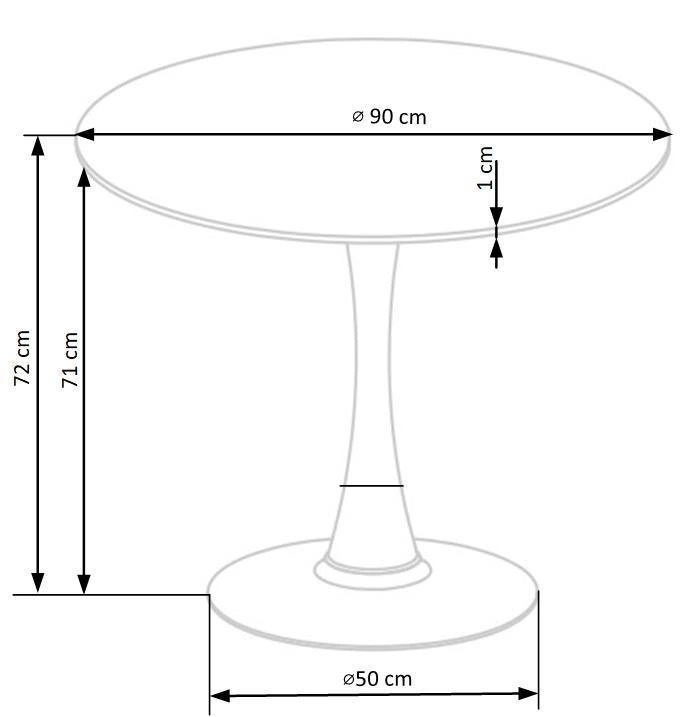 Dzięki swojemu okrągłemu kształtowi, stół ten świetnie sprawdzi się zarówno w małych, jak i większych pomieszczeniach, a jego rozmiar 90x90 cm pozwoli na wygodne spożywanie posiłków przez trzy osoby. Stół nie posiada funkcji rozkładania, co gwarantuje jego prostotę i minimalizm.