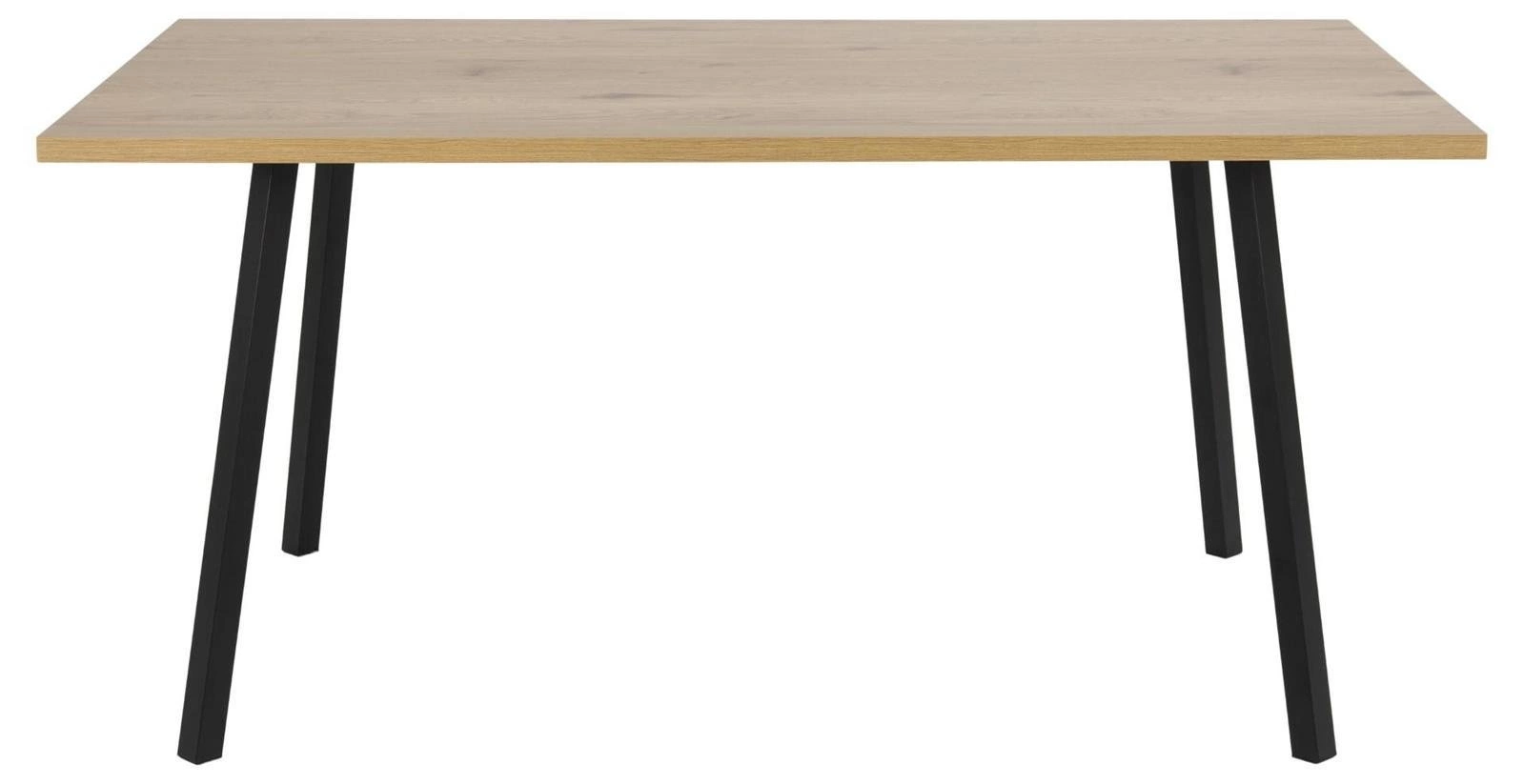 INDUSTRIALNY STÓŁ CENNY urzeka przede wszystkim swoją prostotą oraz matowym wykończeniem. Jego blat stanowi niezwykle wytrzymała i odporna na zabrudzenia płyta meblowa pokryta okleiną imitującą dziki dąb. Podtrzymuje go metalowa podstawa, którą stanowią cztery metalowe nogi o matowym wykończeniu pomalowane proszkowo na kolor eleganckiej czerni. Charakterystyczne dla tego stołu są właśnie nogi, które są nie tylko ustawione pod kątem, ale również odwrócone, co sprawia, że mebel wygląda nowocześnie i wyjątkowo. To ciekawe połączenie prostych form i ponadczasowych materiałów sprawia, że stół będzie idealnym rozwiązaniem do wnętrz w stylu industrialnym, loft, a także nowoczesnych i skandynawskich. Świetnie sprawdzi się jako stół do jadalni, kuchni czy salonu.