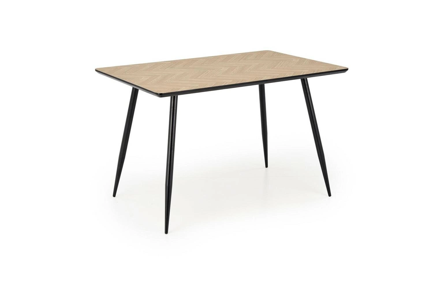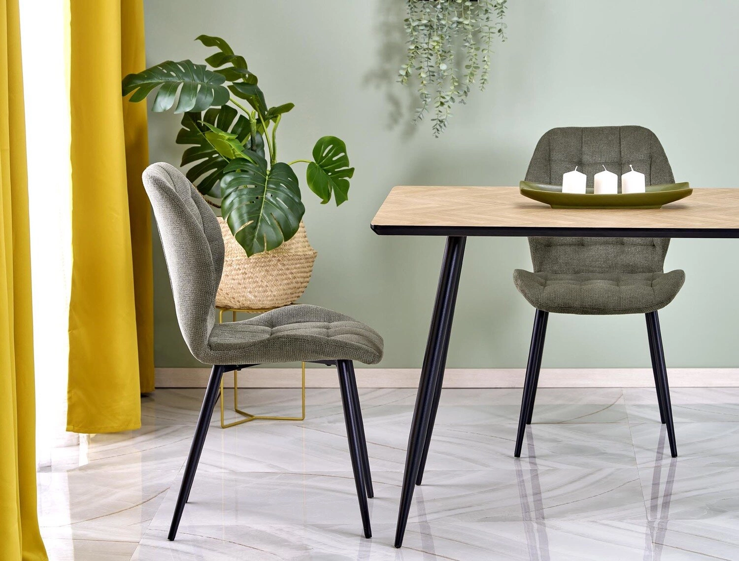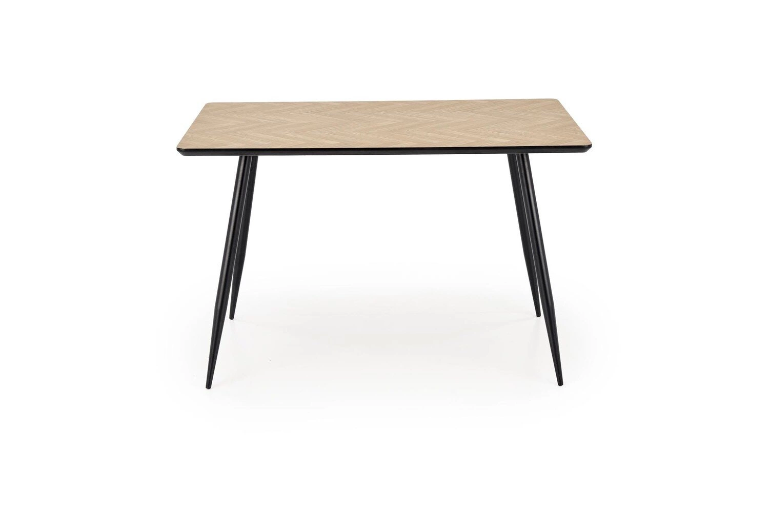 Metalowe nogi malowane proszkowo na czarno dodają stołowi nowoczesności i industrialnego charakteru, jednocześnie zapewniając stabilność oraz solidność całej konstrukcji. Mimo swojego minimalistycznego wyglądu, stół charakteryzuje się wysoką trwałością, co czyni go praktycznym wyborem dla osób ceniących prostotę i funkcjonalność. Kiefer to propozycja, która łączy stylowy wygląd z przystępną ceną, bez kompromisu na jakości.