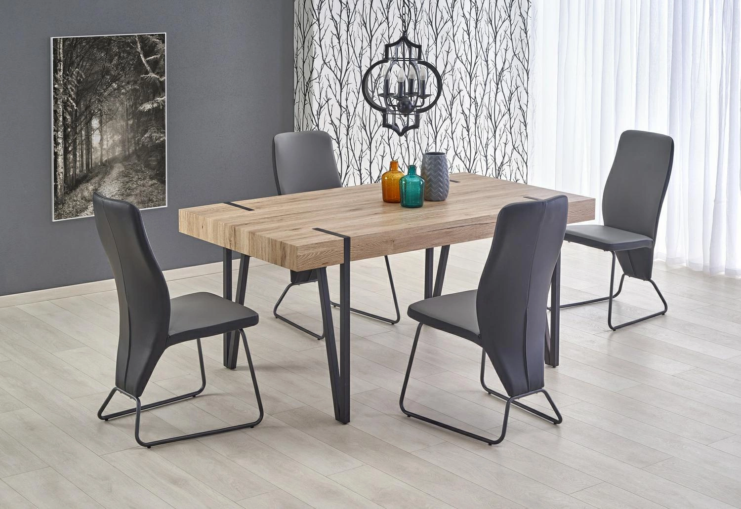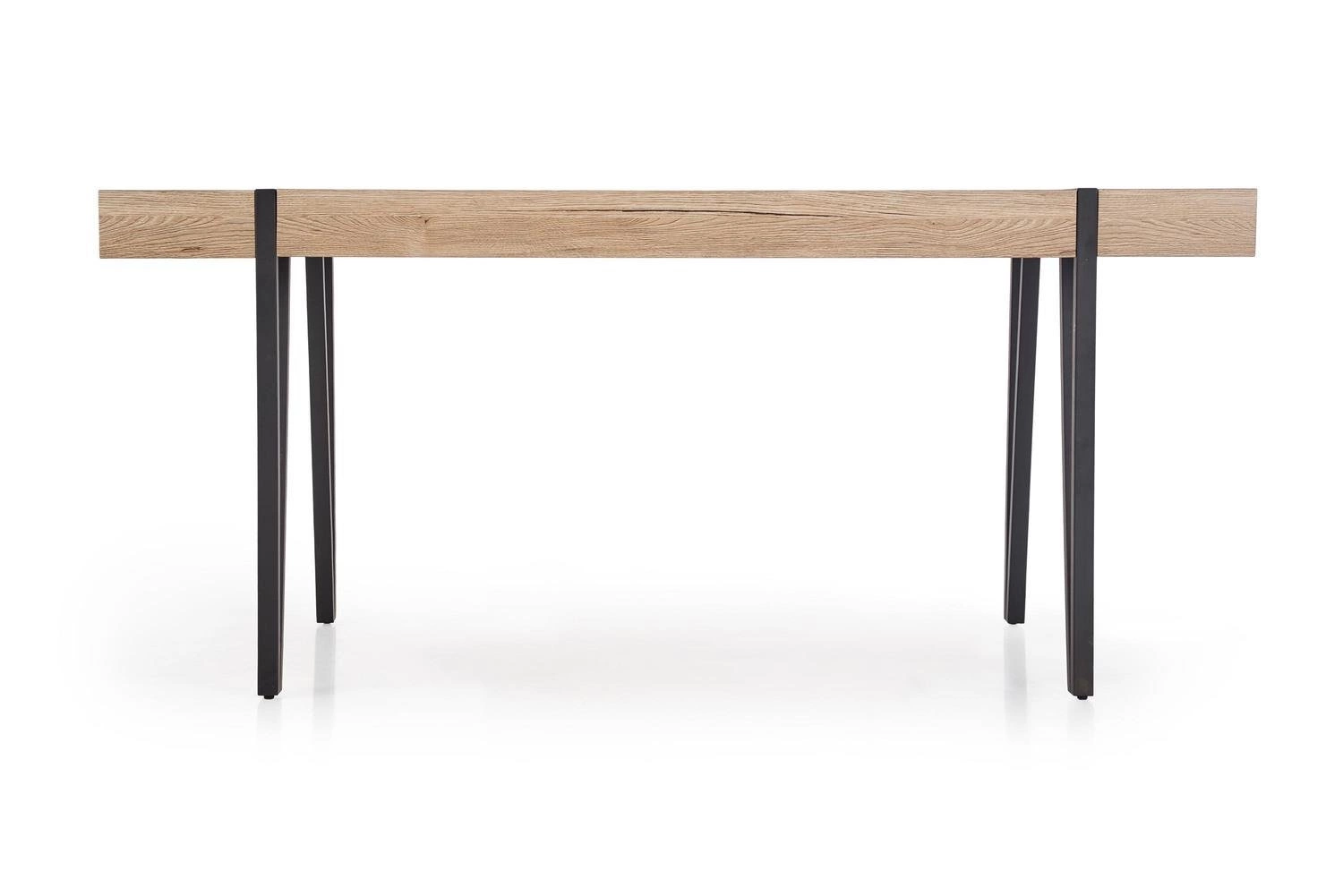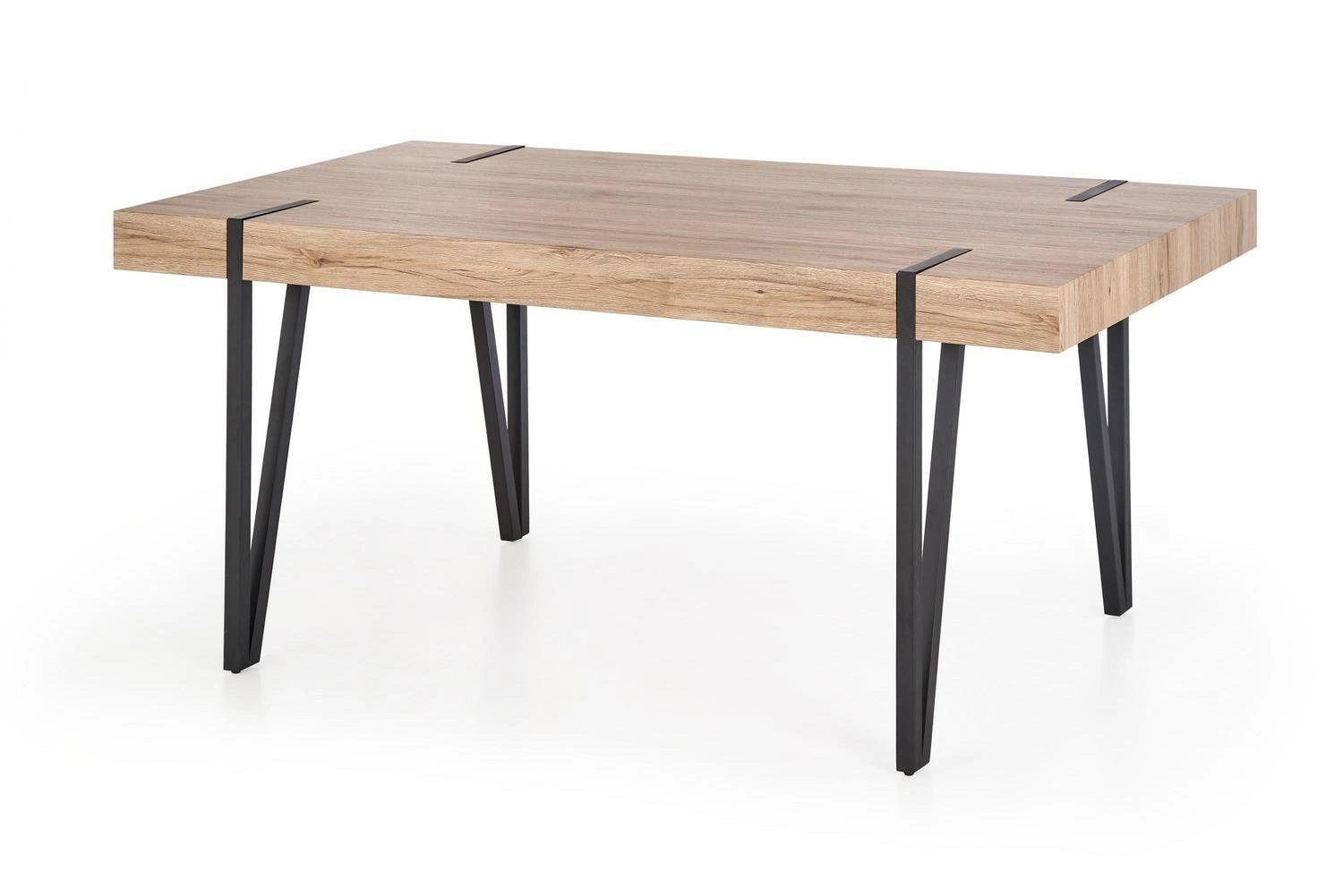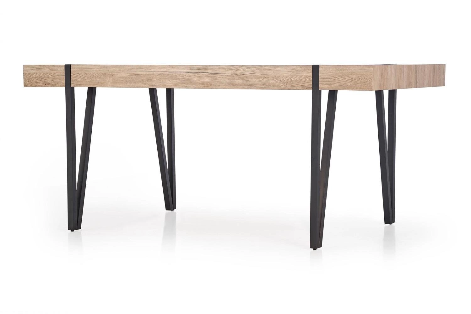 Ten stylowy stół to idealne rozwiązanie dla osób, które cenią sobie nowoczesny design oraz wysoką jakość wykonania. Został wykonany z MDF laminowanego oraz stali malowanej proszkowo, co zapewnia mu wytrzymałość i odporność na uszkodzenia. Blat w kolorze dąb san remo doskonale pasuje do czarnych nóg, co nadaje mu eleganckiego wyglądu.