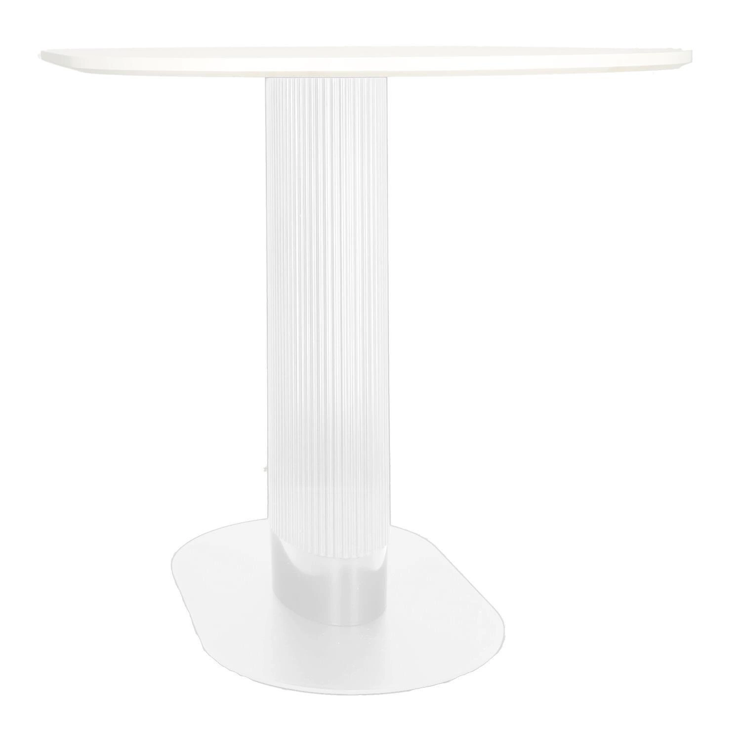 - Noga stołu wykonana z metalu zapewnia stabilność, a pionowe lamelki z tworzywa sztucznego dodają mu nowoczesnego charakteru.
