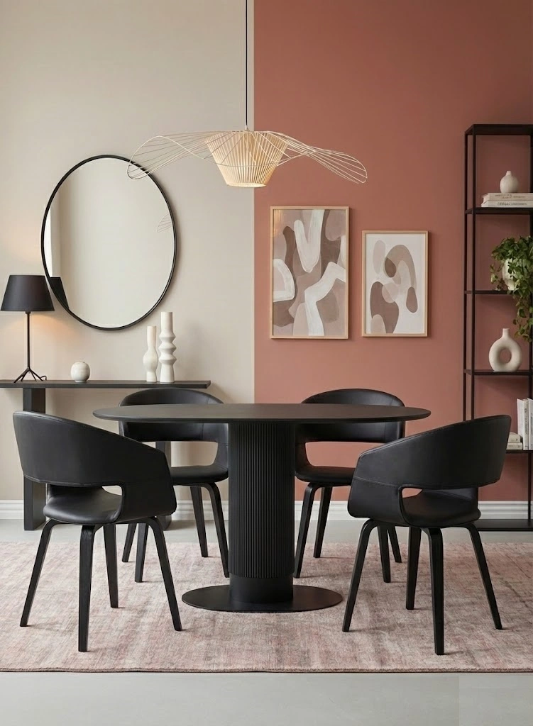 Stół Maxim to kwintesencja nowoczesnego designu – łączy prostotę formy z wyrazistym kolorem oraz niebanalną konstrukcją. Owalny kształt blatu nie tylko prezentuje się niezwykle elegancko, ale także ułatwia rozmieszczenie gości, sprzyjając swobodnej atmosferze przy stole. Jedna, solidna noga wykonana ze stali malowanej proszkowo nadaje całości lekkości wizualnej, a jednocześnie zapewnia wyjątkową stabilność nawet podczas intensywnego użytkowania.
