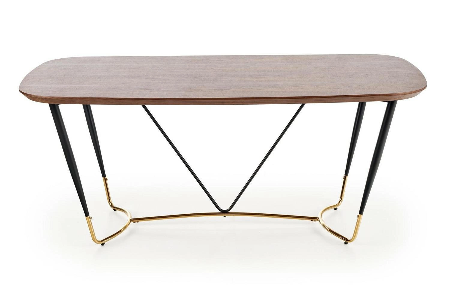 Stół wykonany jest z wysokiej jakości materiałów, takich jak MDF i okleina naturalna, co gwarantuje trwałość i elegancki wygląd. Blat w kolorze orzechowym jest nie tylko piękny, ale i łatwy w utrzymaniu w czystości. Nogi stołu są wykonane z malowanej proszkowo lub chromowanej stali, co nadaje mu nowoczesnego wyglądu. Styl wykonania to połączenie nowoczesności z glamour, dzięki czemu stół z łatwością wpasuje się w każde wnętrze.
