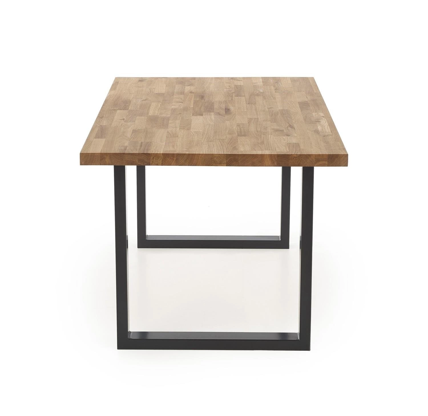 Stół Radus zachwyca surową elegancją typową dla stylu loftowego. Naturalny dąb o wyrazistym usłojeniu i matowym wykończeniu nadaje wnętrzu ciepła oraz przytulności, a czarne stalowe płozy wprowadzają nutę industrialnej nowoczesności. Ten stół do jadalni stanie się centralnym punktem spotkań rodzinnych i towarzyskich, doskonale komponując się zarówno z minimalistycznymi, jak i eklektycznymi aranżacjami.