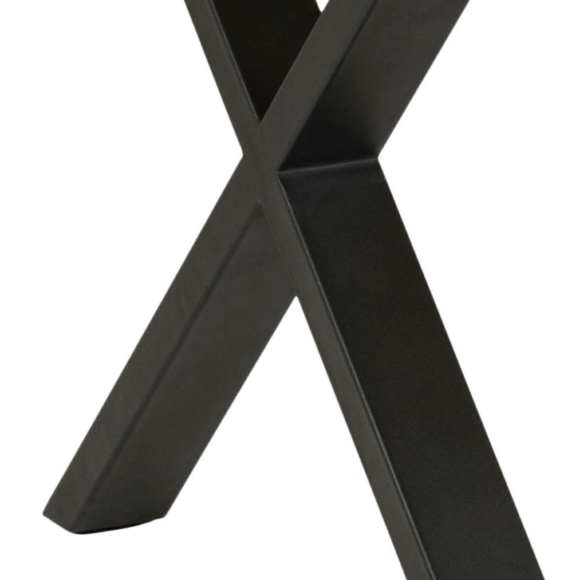 Stół Wales Cross 160x90 to niezwykle solidny mebel użytkowy, który posłuży przez długie lata. Utrzymany w stylu industrialno-nowoczesnym. Wykonany z solidnego blatu o grubości 4 cm i metalowych skrzyżowanych nóg, które są gwarancją trwałości. Blat został pokryty okleiną o strukturze dzikiego dębu zabezpieczającą przed wszelkimi zabrudzeniami. Podstawę stanowią niezwykle efektowne stalowe profile pomalowane proszkowo na czarno. Matowe wykończenie nóg stołu dodaje mu elegancji. Waga stołu: 44 kg