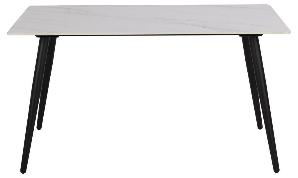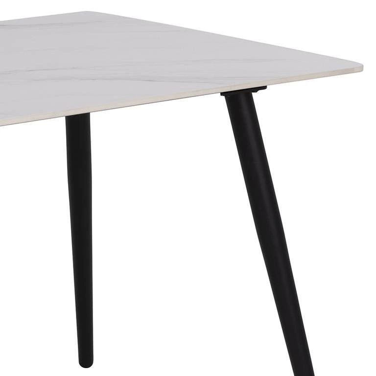 Twoje wnętrza wypełnia wyposażenie utrzymane w duchu minimalizmu? Stół ceramiczny Wicklow z pewnością przypadnie Ci do gustu! Wyróżnia go przede wszystkim ponadczasowe połączenie wysokiej jakości materiałów z subtelną i lekką konstrukcją. Stół posiada blat wykonany z płyty ceramicznej udekorowanej printem imitującym marmur. Jego subtelną formę podkreślają zaokrąglone rogi, które zaprojektowane zostały, by dbać o bezpieczeństwo użytkowników. Marmurowy blat podpierają cztery smukłe nogi z metalu malowane proszkowo na czarno. Zaokrąglenia na ich końcach sprawiają, że metal nie wygląda zbyt surowo, a całość ma elegancki i stylowy charakter. Stół Wicklow to propozycja do jadalni w stylu glamour bądź nowoczesnej restauracji. Doskonale odnajdzie się także w klimacie wnętrz industrialnych i nowoczesnych.