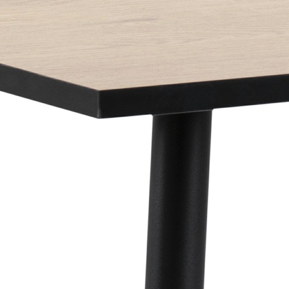 Stół Wilma to połączenie blatu w kolorze dzikiego dębu z metalową podstawą. Drewniany blat w okleinie imitującej dąb doskonale współgra z metalową, matową, malowaną proszkowo na kolor czarny podstawą. Boki blatu dla kontrastu zostały oklejone okleiną w kolorze i strukturze czarnego dębu. Stół sprawdzi się doskonale w każdym wnętrzu. Nadaje się do przestrzeni hotelowych, gastronomicznych oraz domowej jadalni czy salonu. Waga stołu: 19,5 kg