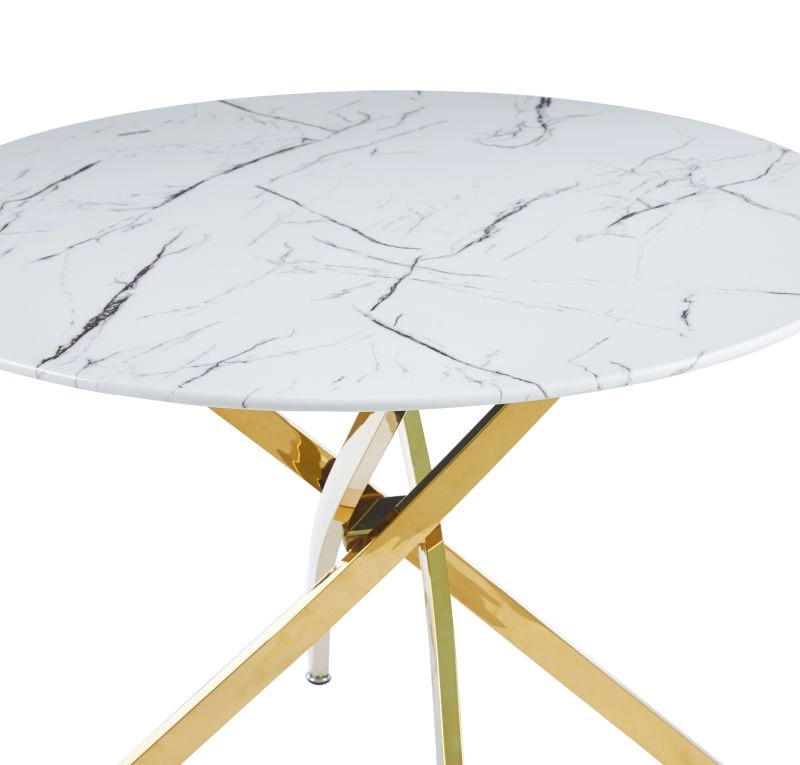 Blat stołu wykonany ze szkła w kolorze pięknego białego marmuru dodaje mu luksusowego wyglądu, który z pewnością przyciągnie uwagę. Dodatkowo, stal chromowana użyta do produkcji nóg stołu zapewnia stabilność i trwałość, co gwarantuje długotrwałe użytkowanie.
