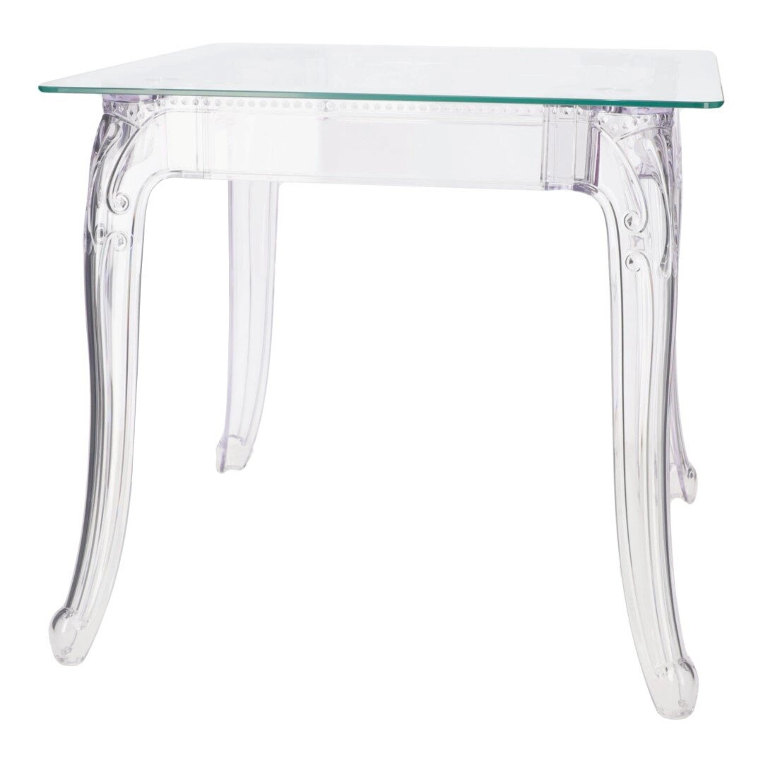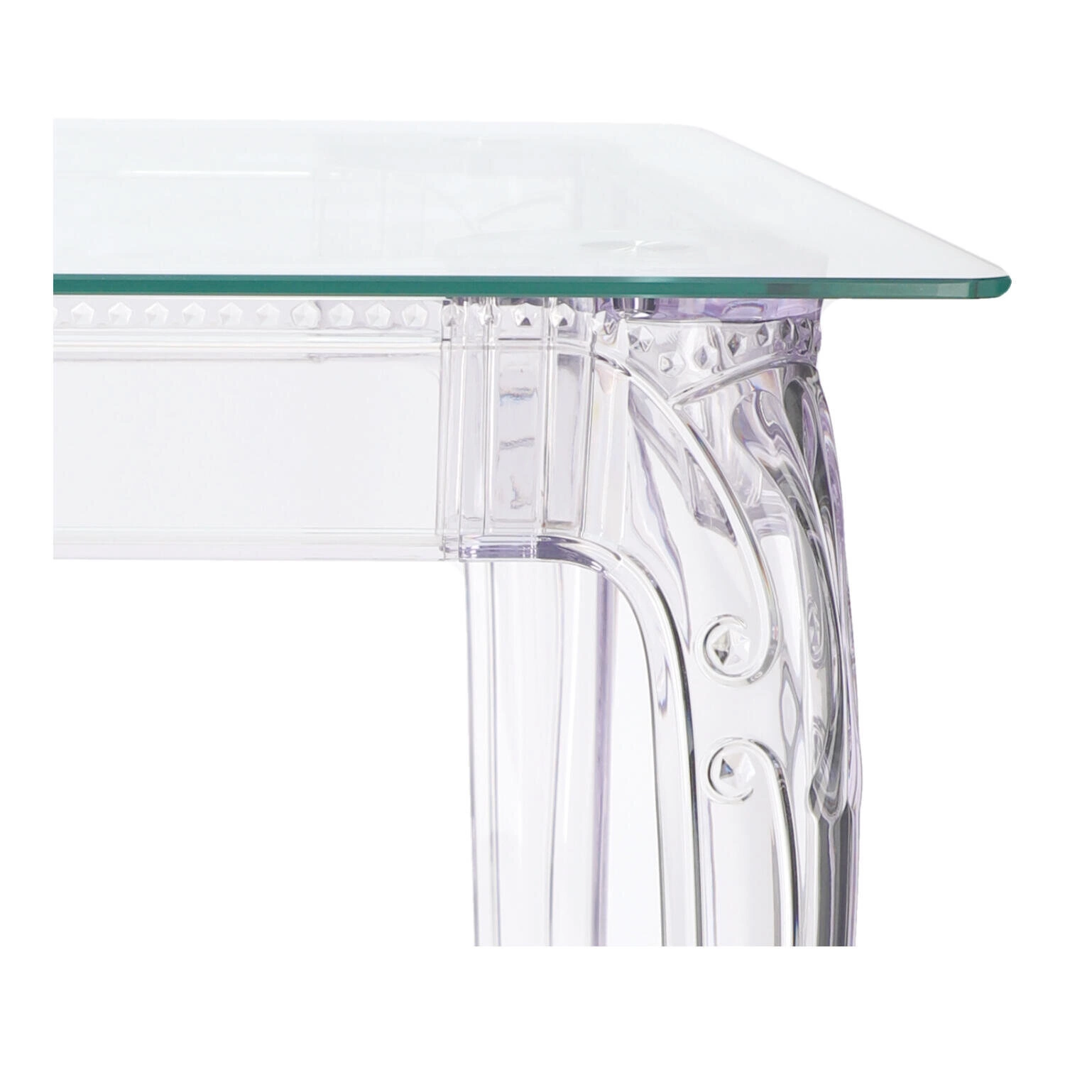 Stół Ghost 80x80cm to idealne połączenie elegancji i funkcjonalności. Jego kwadratowy, transparentny blat o grubości 10 mm nadaje mu nowoczesny wygląd, który doskonale komponuje się z każdym stylem wnętrza. Bogato zdobione poliwęglanowe nogi dodają mu szlachetności i wyrafinowania.