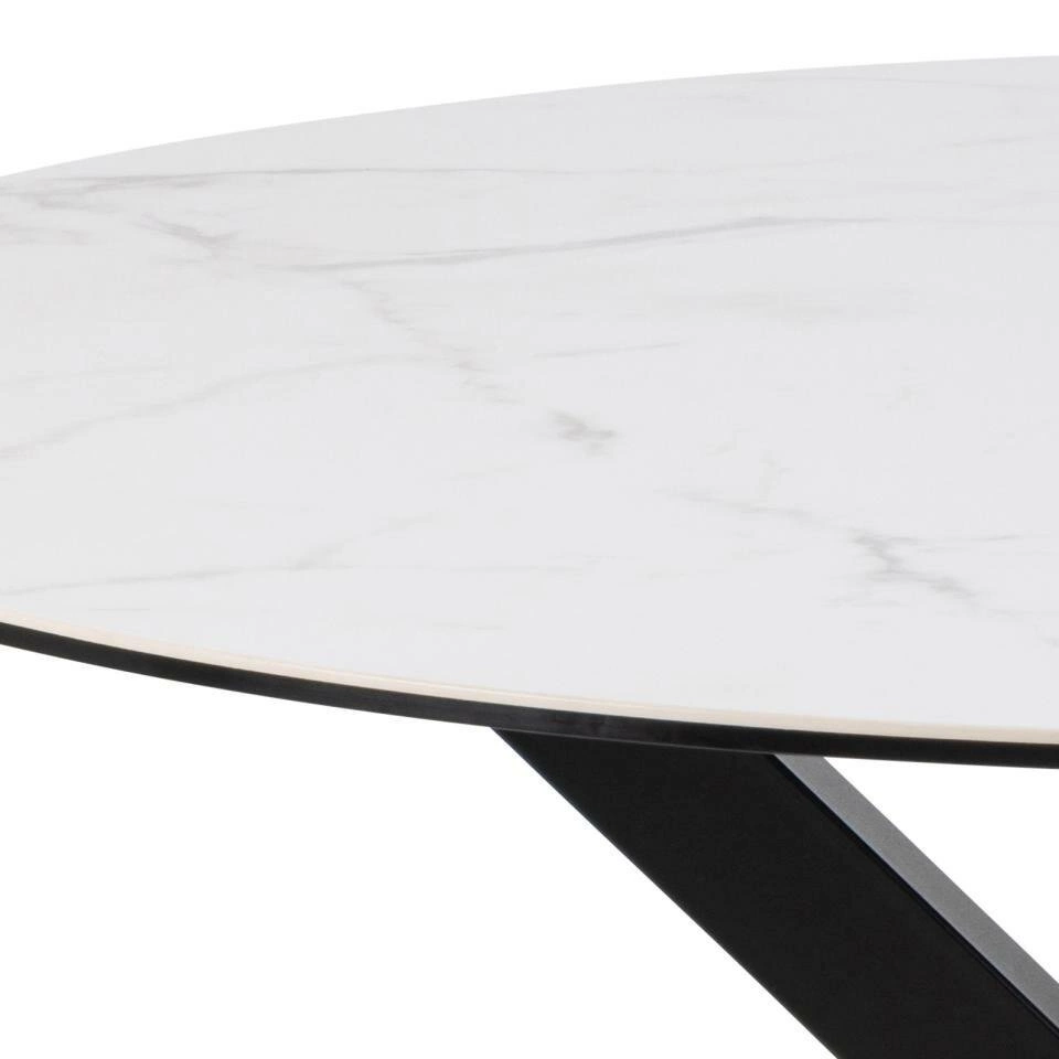 Nie tylko wygląd tego stołu zachwyca - blaty w białym, marmurowym kolorze i rzeźbiarska podstawa w czarnym kolorze nadają mu odważnego charakteru, który doda elegancji każdemu wnętrzu. Wykonany z wysokiej jakości ceramiki, odpornego na ciepło i zarysowania materiału, oraz wytrzymałej stali, stół ten jest nie tylko piękny, ale i praktyczny.