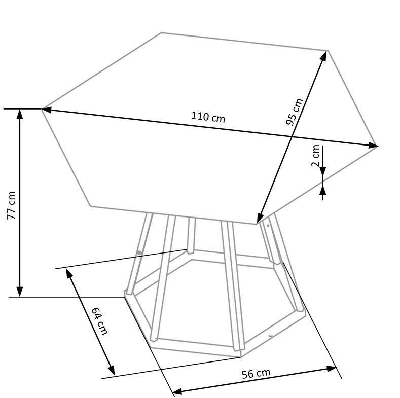 Stół Hexis reprezentuje połączenie stylów loftowego i nowoczesnego, tworząc harmonijną kompozycję, która pasuje do współczesnych wnętrz. Jego minimalistyczny, a zarazem oryginalny design sprawia, że staje się centralnym punktem w salonie lub jadalni. Stół Hexis został zaprojektowany jako 4-osobowy, co czyni go idealnym rozwiązaniem dla rodzinnych posiłków i spotkań towarzyskich. Jego sześcioboczny kształt nadaje stołu unikalności i umożliwia swobodne poruszanie się wokół niego, tworząc przyjemną atmosferę podczas wspólnych chwil. Stół Hexis waży 17 kg, co czyni go lekkim i łatwym w przemieszczaniu. Mebel ten to nie tylko praktyczne rozwiązanie do codziennego użytku, ale również designerski element, który nadaje pomieszczeniu wyjątkowego charakteru i estetyki.
