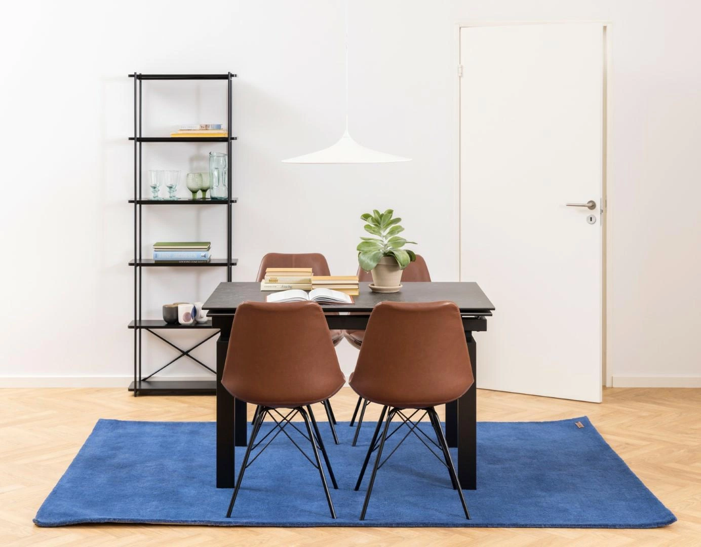 Stół Huddersfield w kolorze czarnym to masywny mebel o ciekawej, nowoczesnej formie. Podstawę stanowi geometryczna metalowa konstrukcja z czterema prostokątnymi nogami. Długi blat wykonany jest z płyty ceramicznej o chropowatej powierzchni. Ten wyjątkowy model, idealnie pasujący do wnętrz w stylu industrialnym, sprawdzi się zarówno w salonie, jadalni, jak i w przestrzeniach komercyjnych np. restauracji lub kawiarni. Stół jest również bardzo funkcjonalny z dużą ilością miejsca na posiłki i spotkania towarzyskie. Pod blatem znajduje się przestronna półka, idealna do przechowywania czasopism i książek. Czarny stół Huddersfield to przyciągający uwagę element, który z pewnością wniesie styl i funkcjonalność do każdego wnętrza.