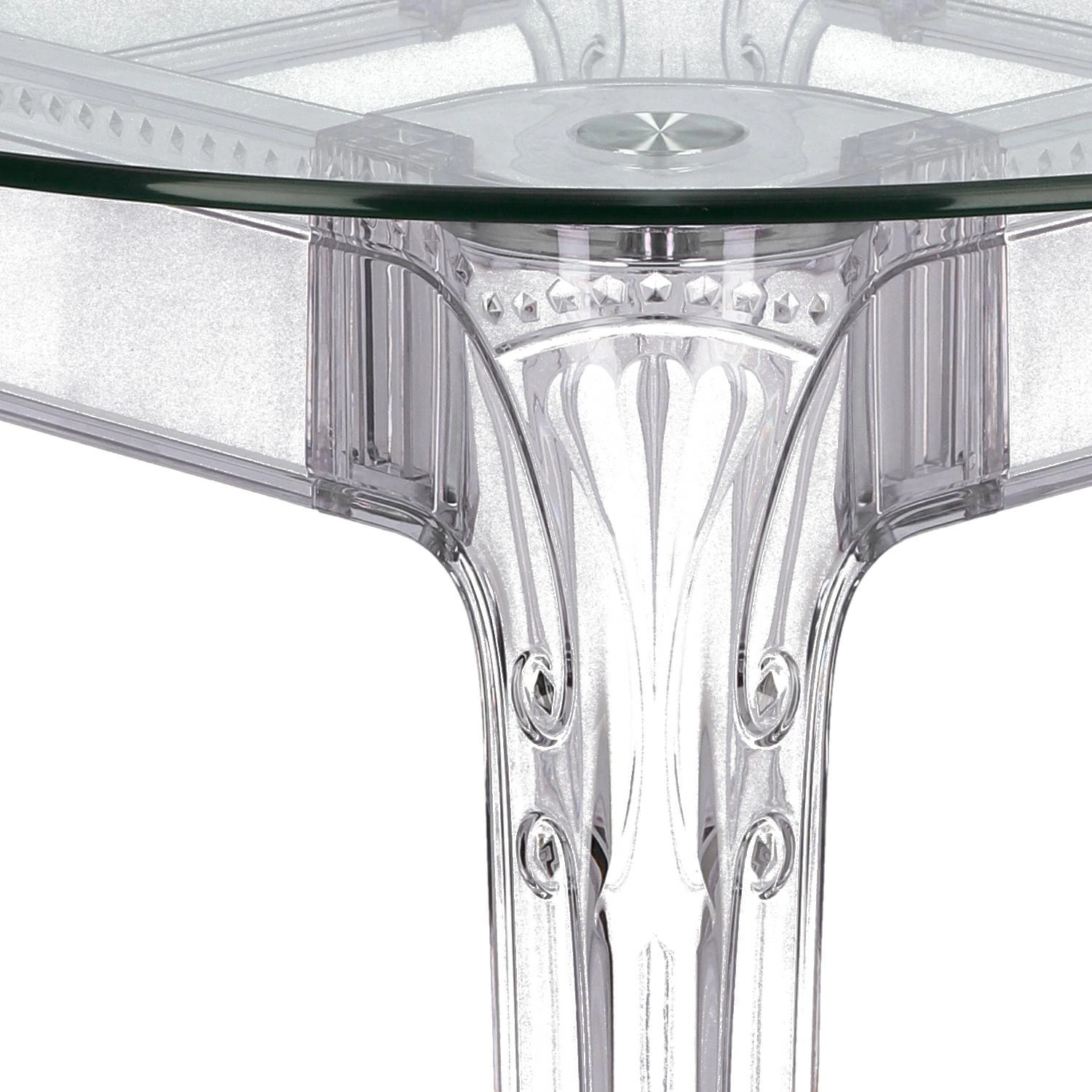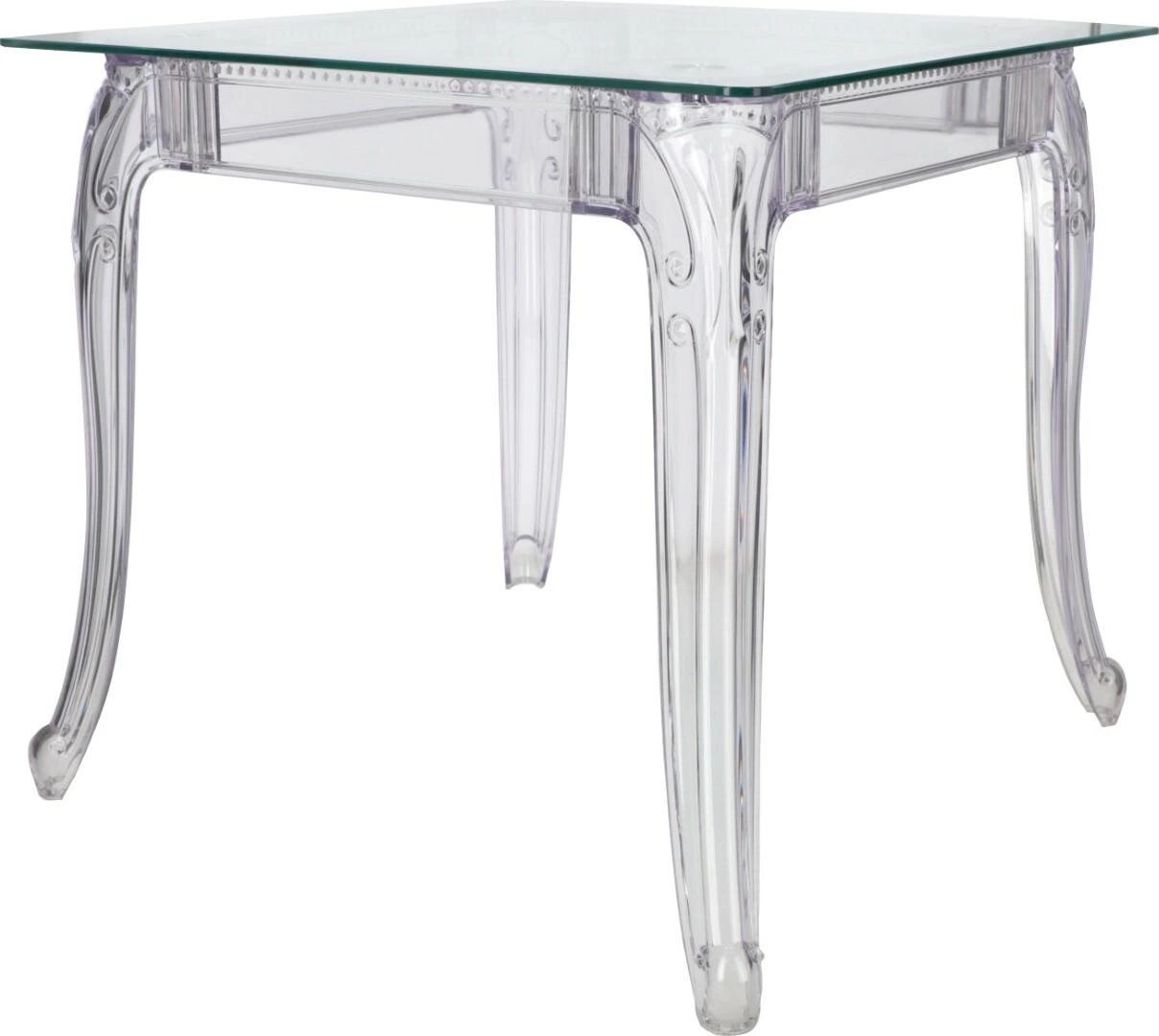 Stół Ghost 80x80cm to idealne połączenie elegancji i funkcjonalności. Jego kwadratowy, transparentny blat o grubości 10 mm nadaje mu nowoczesny wygląd, który doskonale komponuje się z każdym stylem wnętrza. Bogato zdobione poliwęglanowe nogi dodają mu szlachetności i wyrafinowania.
