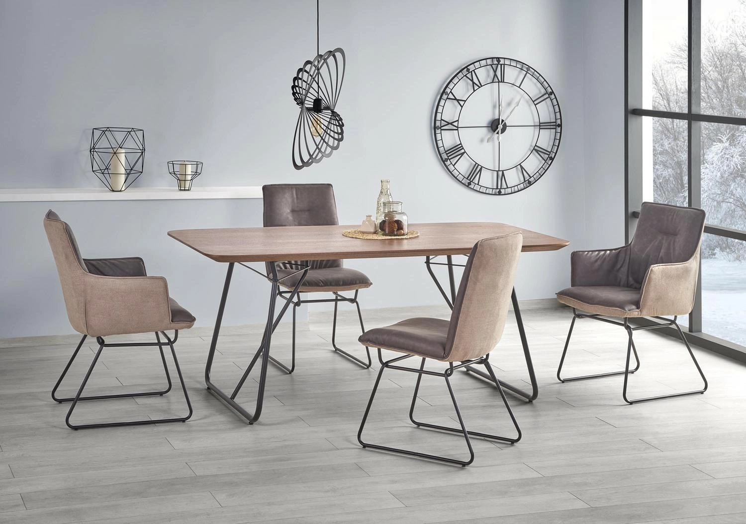 Ten piękny stół o wymiarach 180/90/76 cm to doskonałe rozwiązanie dla osób, które cenią sobie wygodę i stylowe wykończenie wnętrza. Dzięki swojej dużej wielkości, stołowanie się w gronie 8 osób będzie wyjątkowo komfortowe i przyjemne. Materiały, z których został wykonany, to MDF, okleina naturalna oraz stal malowana proszkowo, co gwarantuje trwałość i solidność przez długi czas.