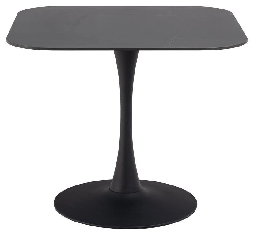 Stwórz zachęcającą atmosferę w swoim domu dzięki eleganckiemu stołowi Malta. Wyposażony w ceramiczny blat o wyglądzie czarnego marmuru i podstawę w kształcie trąbki wykonaną z matowego, czarnego metalu malowanego proszkowo, ten kwadratowy stół jest zarówno stylowy, jak i praktyczny.