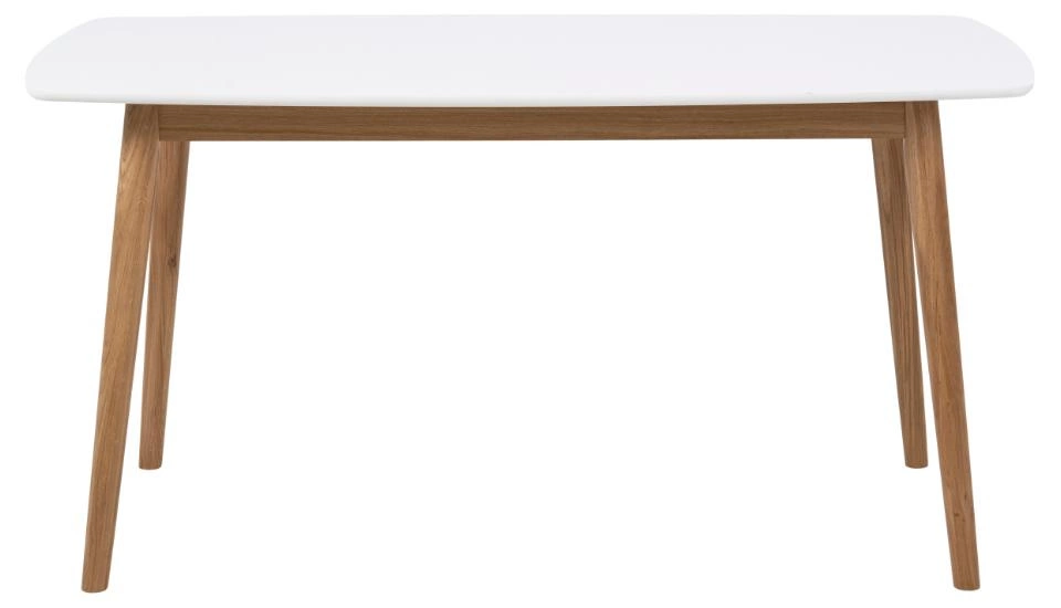 Stół Nagano M White skandynawski to połączenie prostoty i funkcjonalności. Jego minimalistyczny design nawiązuje do stylu lat 50-tych, co dodaje mu niepowtarzalnego charakteru. Wykonany z litego drewna dębowego i płyty MDF, stół jest nie tylko estetyczny, ale również solidny i wytrzymały. Blat stołu w kolorze białym jest lekko zaokrąglony, co dodaje mu lekkości i elegancji. Toczone nóżki stołu, zwężające się ku dołowi, dodają mu stabilności i wytrzymałości.