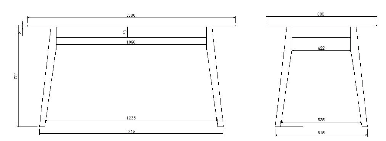 - Toczone nóżki stołu zwężają się ku dołowi, co zapewnia mu stabilność.