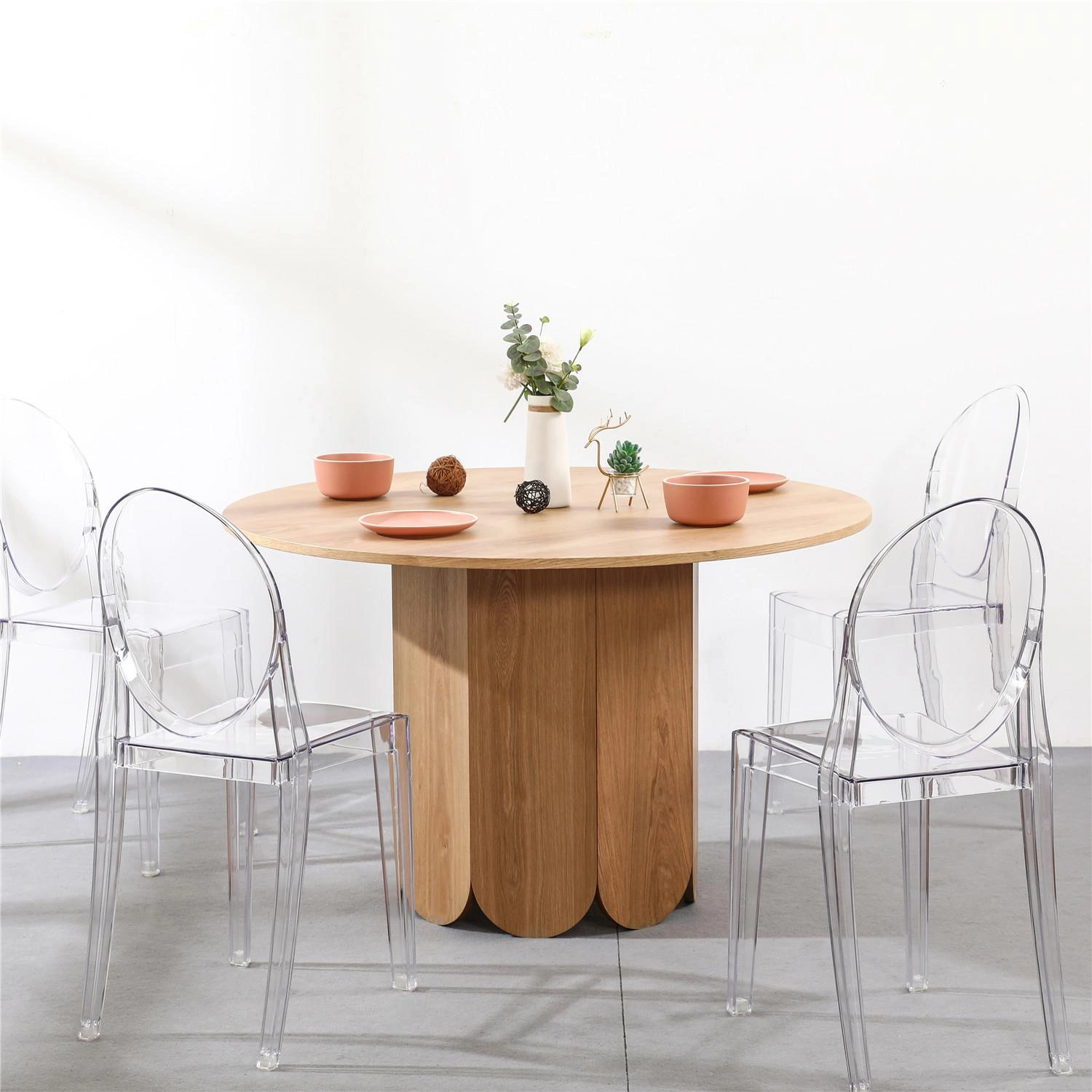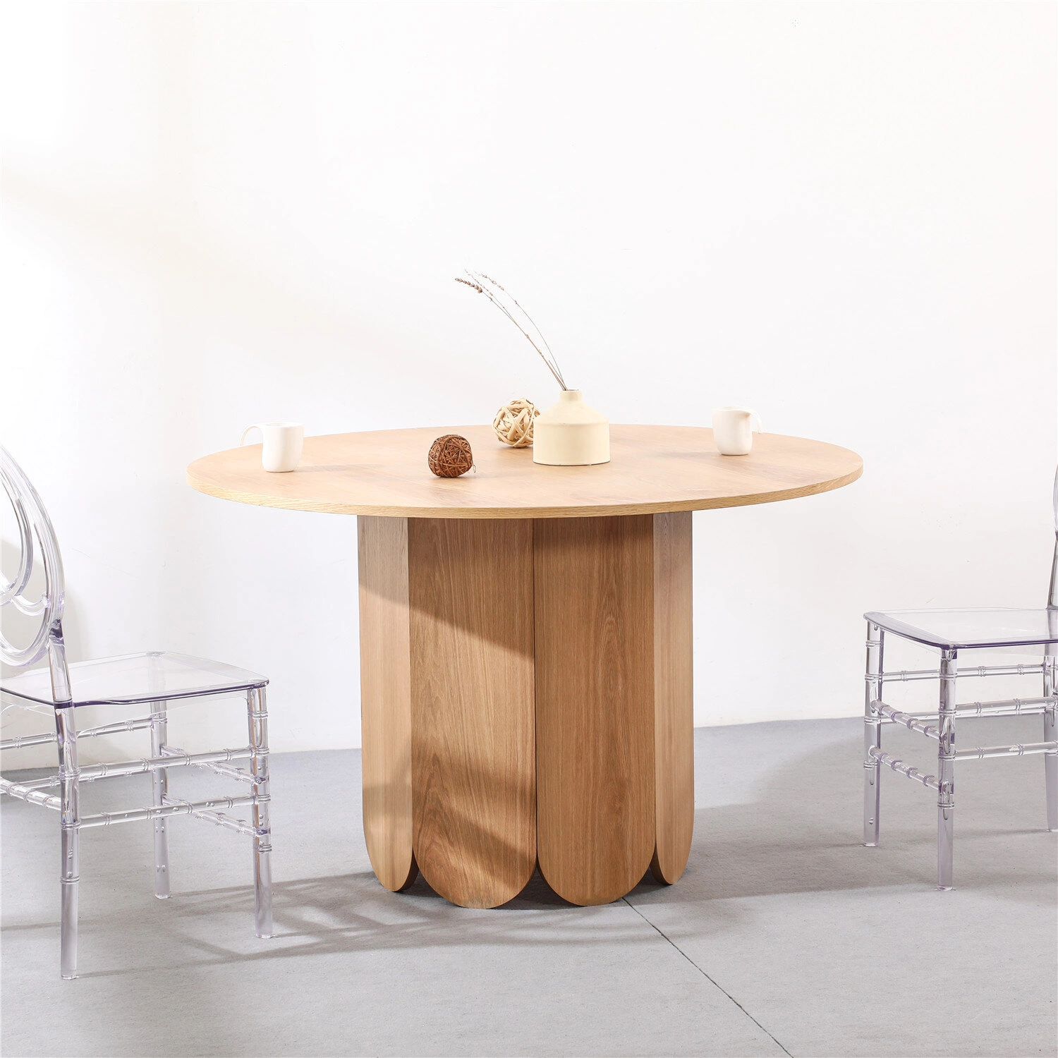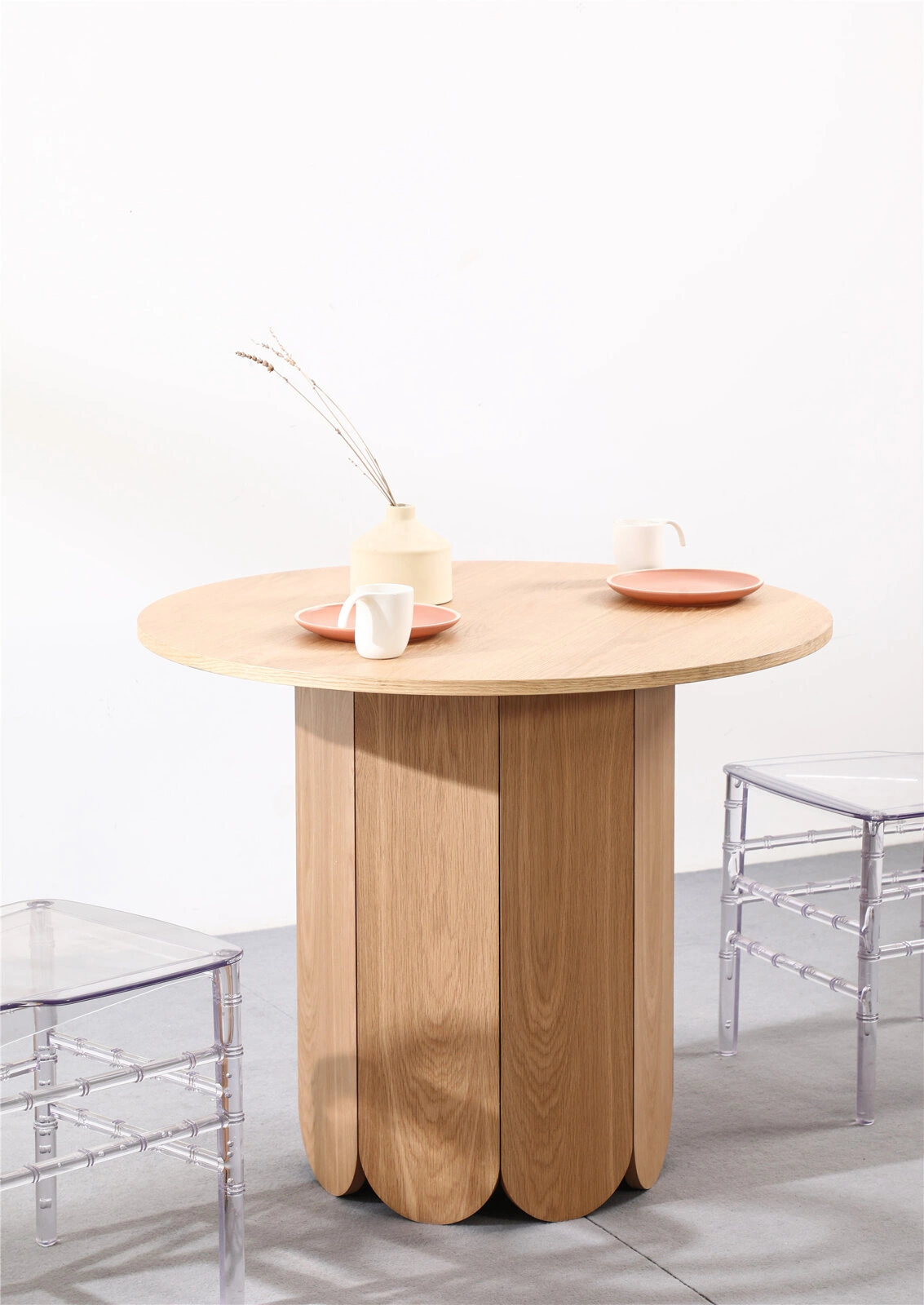 Stół Puro - Okrągły stół w kolorze dębu | Intesi Uzyskaj ponadczasowy wygląd dzięki stołowi Puro od Intesi. Okrągły dębowy stół jest idealny do wnętrz w stylu boho lub skandynawskim i ma ośmiokątną podstawę, z okleinowanej płyty MDF, która realistycznie imituje drewno dębowe, oraz czarne plastikowe nóżki chroniące podłogę. Maksymalne obciążenie wynosi 50 kg, co czyni go trwałym dodatkiem w twoim wnętrzu. Dębowy stół Puro to szczyt funkcjonalności i stylu boho. Idealny zarówno do wnętrz boho, jak i skandynawskich, ponadczasowy mebel został zaprojektowany tak, aby był piękny i trwały. Okrągły blat z płyty MDF mierzy 90 cm i znajduje się na jednej, solidnej, ośmiokątnej nodze, wykonanej z wytrzymałej płyty MDF z okleiną z drewna dębowego i subtelnymi zaokrągleniami po bokach. Stół wygląda doskonale, a kolory blatu i podstawy zostały starannie dobrane tak, aby wzajemnie się pokrywać. Konstrukcja została dodatkowo wzmocniona czarnymi plastikowymi nóżkami, aby uniknąć zarysowania podłogi. Nie daj się zwieść jego wyglądowi - ten lekki stół waży zaledwie 23 kg i może utrzymać ciężar do 50 kg. Łatwy w montażu, dębowy stół Puro oferuje idealną równowagę między estetyką, trwałością i funkcjonalnością. O tym warto pamiętać! Wyróżnij się dzięki wyjątkowemu stolikowi, który podkreśli każdą przestrzeń Niezrównana trwałość i stabilność dzięki ośmiokątnej konstrukcji nóg Realistyczna okleina z drewna dębowego zapewnia ponadczasowy, naturalny wygląd Ochrona podłogi przed zarysowaniem dzięki czarnym nóżkom ochronnym
