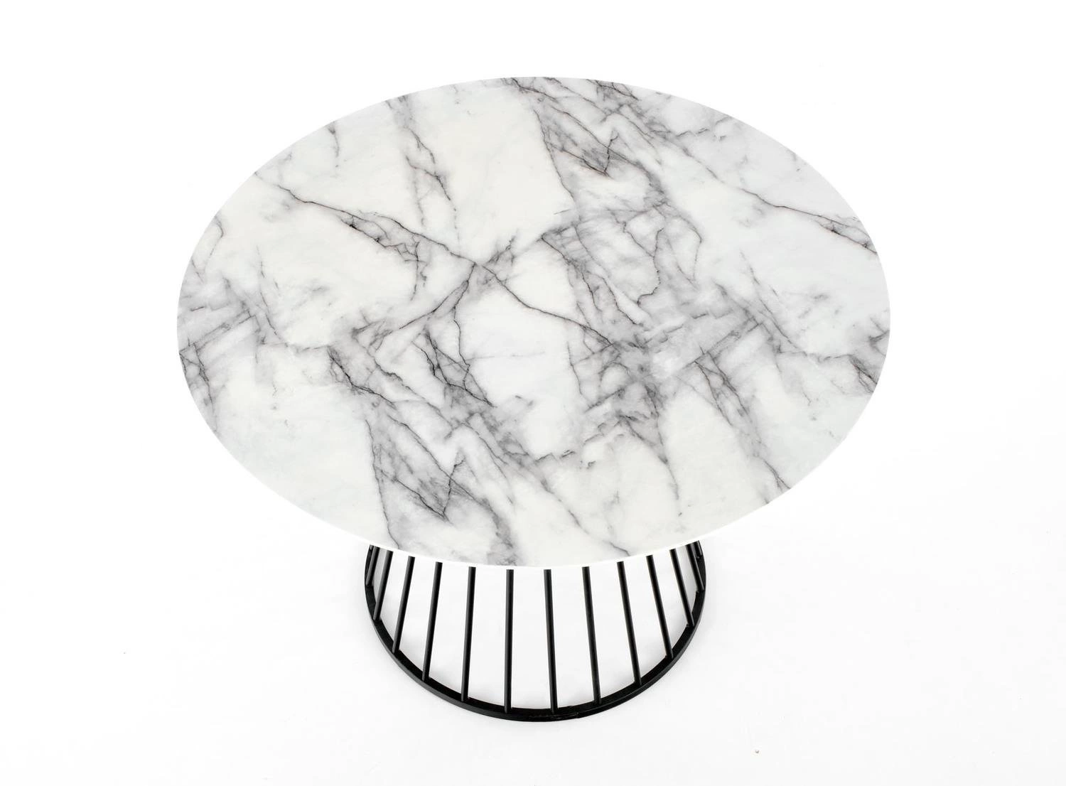 Blat stołu wykonany jest z MDF-u okleinowanego, imitującego piękny biały marmur. To wysokiej jakości materiał, który nadaje meblowi luksusowy wygląd, a jednocześnie jest łatwy do utrzymania w czystości. Noga stołu wykonana jest z malowanej proszkowo stali na kolor czarny, co zapewnia mu trwałość i stabilność. Mebel waży 24 kg, co czyni go łatwym do przestawiania i aranżacji w różnych pomieszczeniach. Podstawa Dabro jest nie tylko praktycznym elementem, ale także dekoracyjnym akcentem, który przyciąga uwagę i dodaje elegancji.