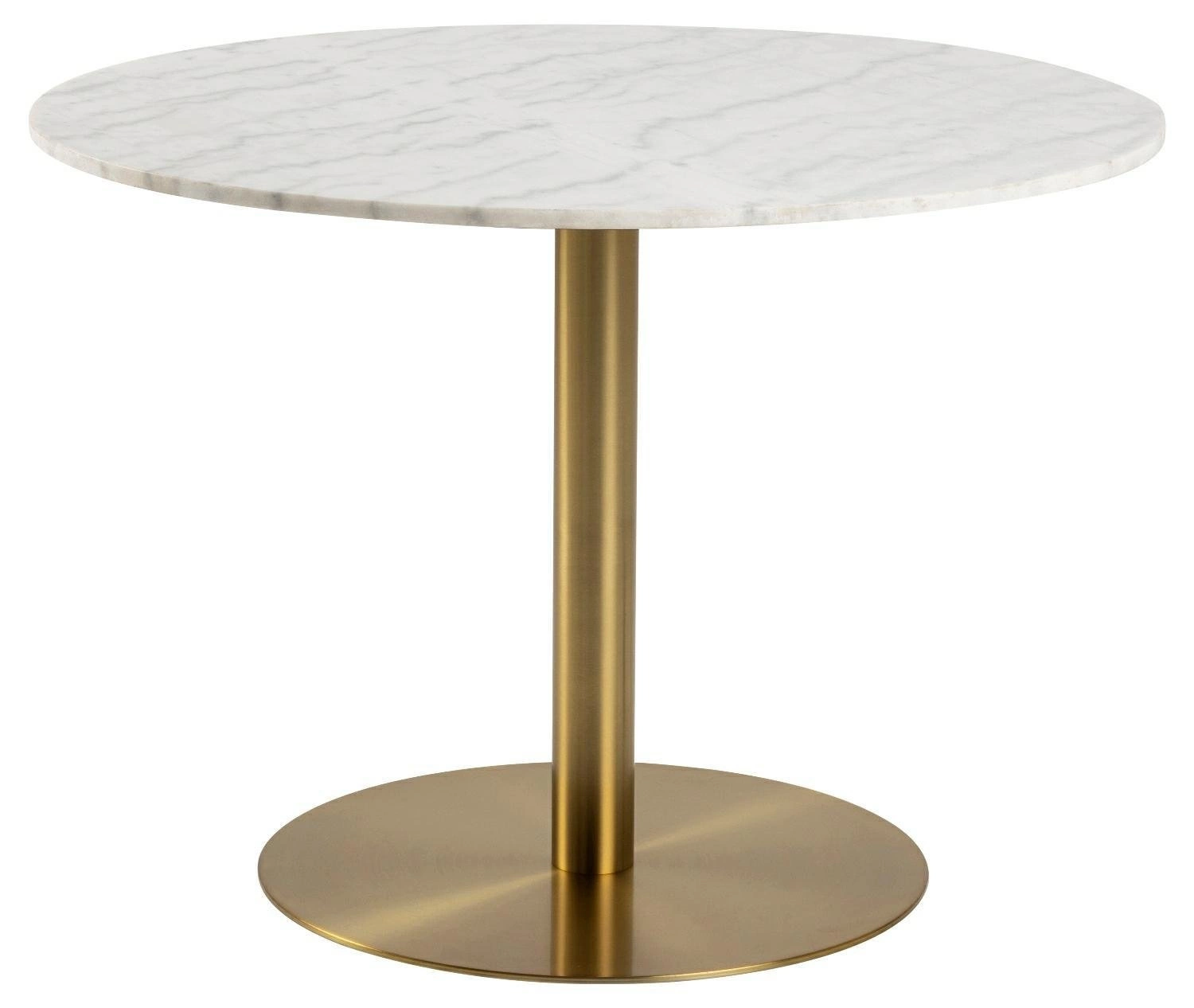 Stół okrągły z marmurowym blatem wykonanym z białego marmuru połączony został ze szczotkowanym metalem w kolorze złotym. Niezwykłe połączenie sprawia, że stół jest niezwykle elegancki oraz efektowny. Sprawdzi się zarówno w modernistycznej kuchni, ekstrawaganckim holu hotelu czy eleganckiej restauracji. Styl Glamour w połączeniu z nowoczesnością sprawia, że mebel ten prezentuje się wyjątkowo.