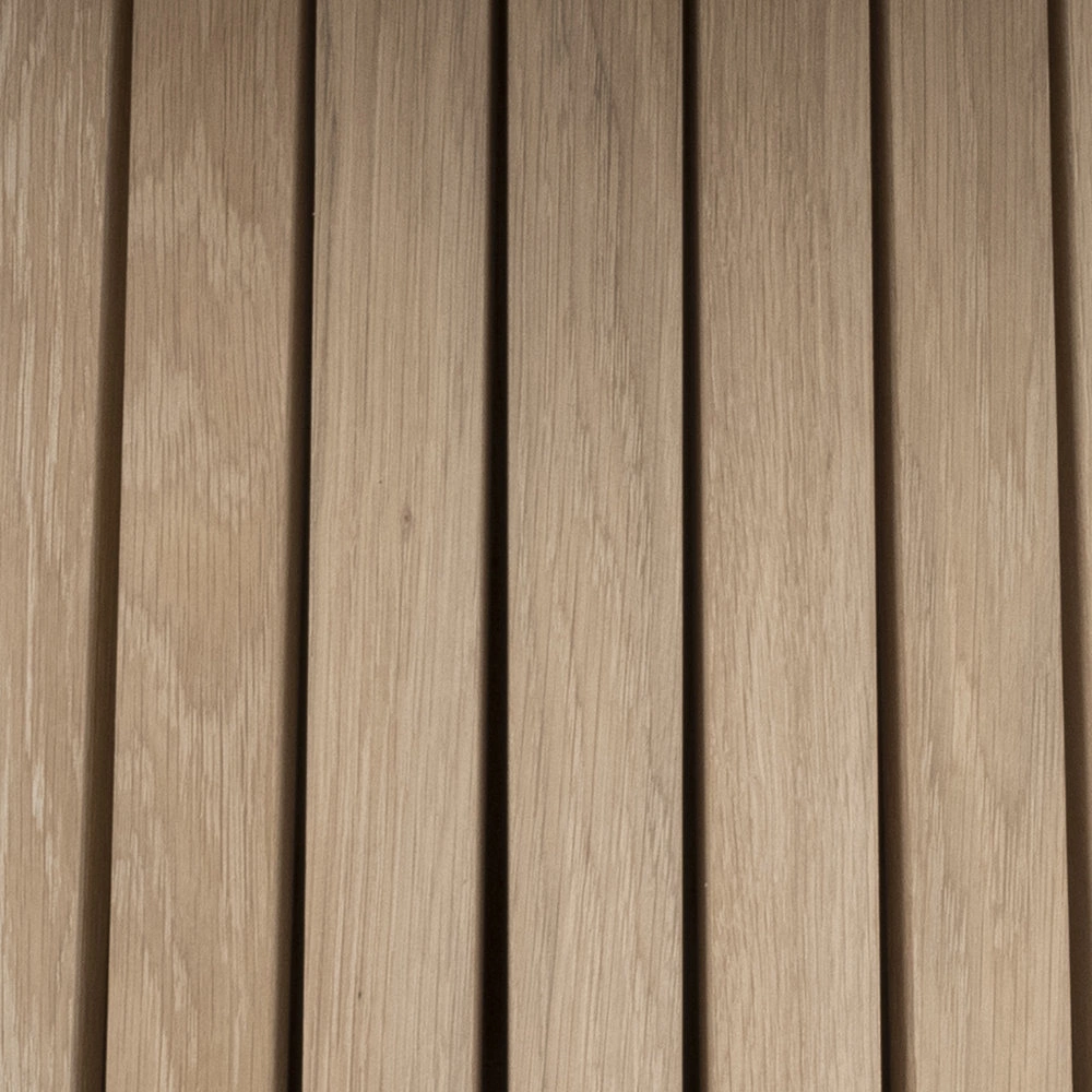 Stół Christo to wyjątkowy projekt o nietypowej podstawie. Posiada okrągły blat o średnicy 120cm oraz cylindryczną podstawę złożoną z pionowych listew. Stół w całości wykonany jest z bielonego forniru dębowego. Jego minimalistyczna forma i neutralny kolor sprawiają, że jest on doskonałym uzupełnieniem wnętrz o różnorodnym wystroju.