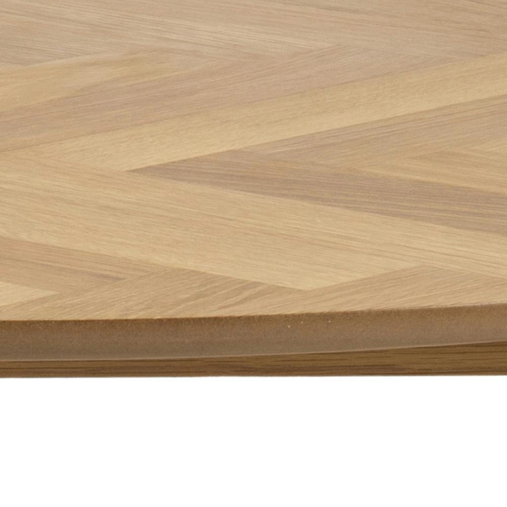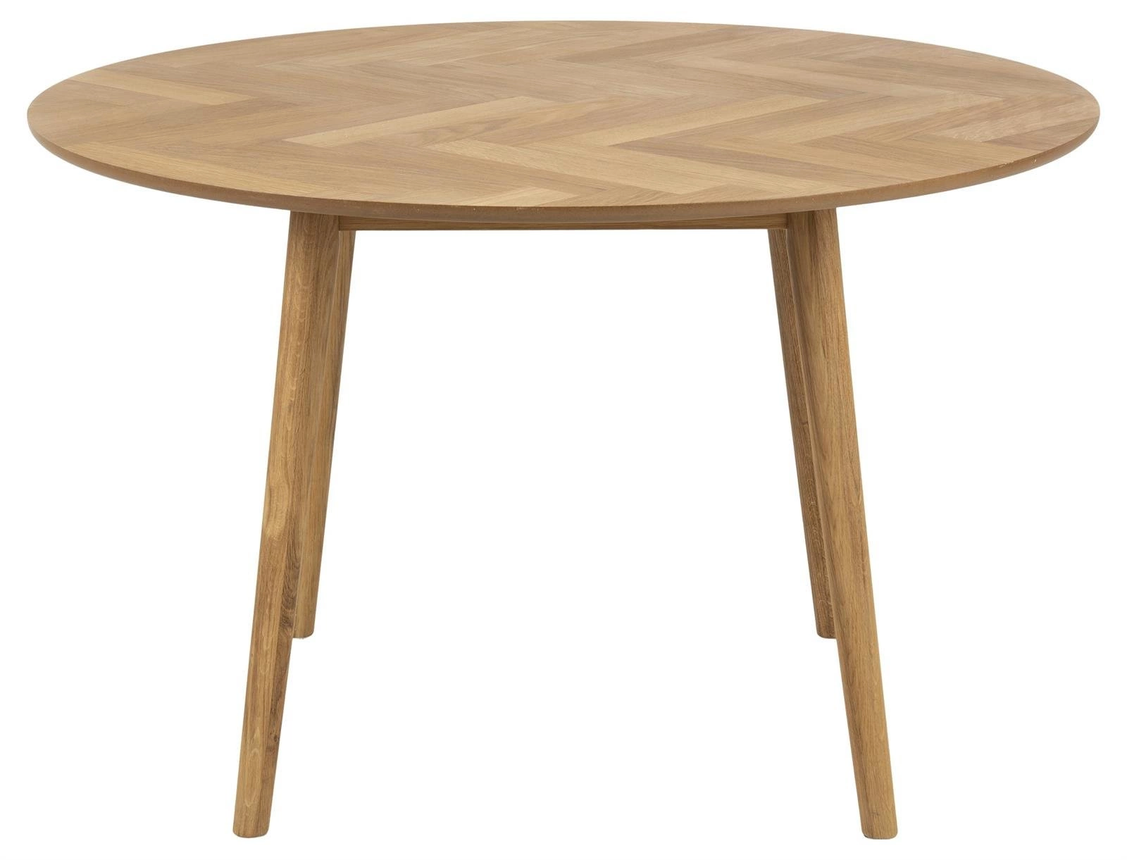 Stół Nagano jest idealnym stołem do nowoczesnej jadalni. Konstrukcja stolika zachowana została w ponadczasowym stylu skandynawskim o minimalistycznym charakterze. Tym co wyróżnia ten stół, jest jego okrągły blat, na którym widnieje bardzo modny wzór jodełki. Blat został pokryty fornirem dębowym. Podstawa Nagano to solidne cztery nogi z naturalnego drewna dębowego. Nagano to propozycja dla osób, ceniących klasyczne i uniwersalne meble. Ten stół bez problemu wpasuje się w każdy rodzaj aranżacji.