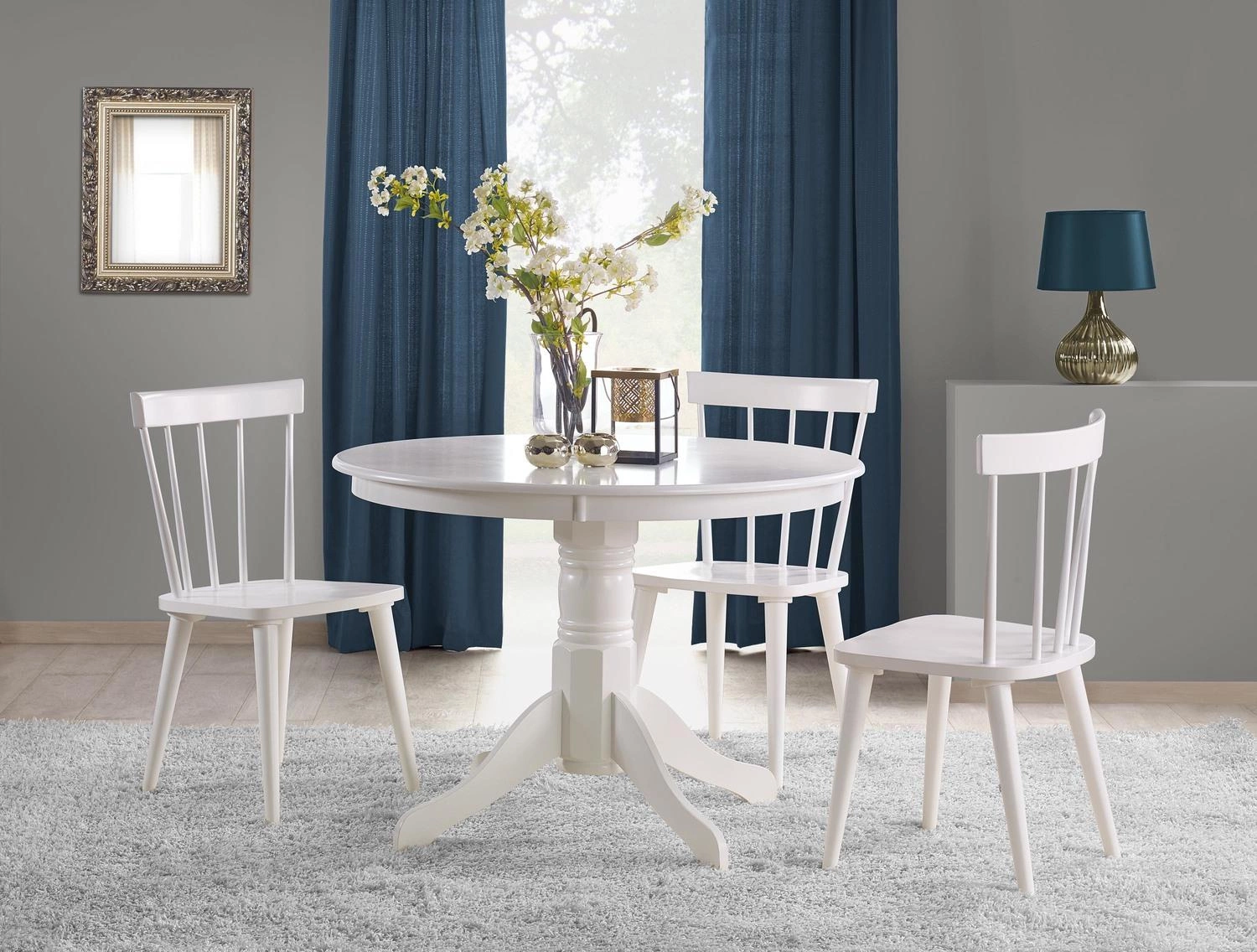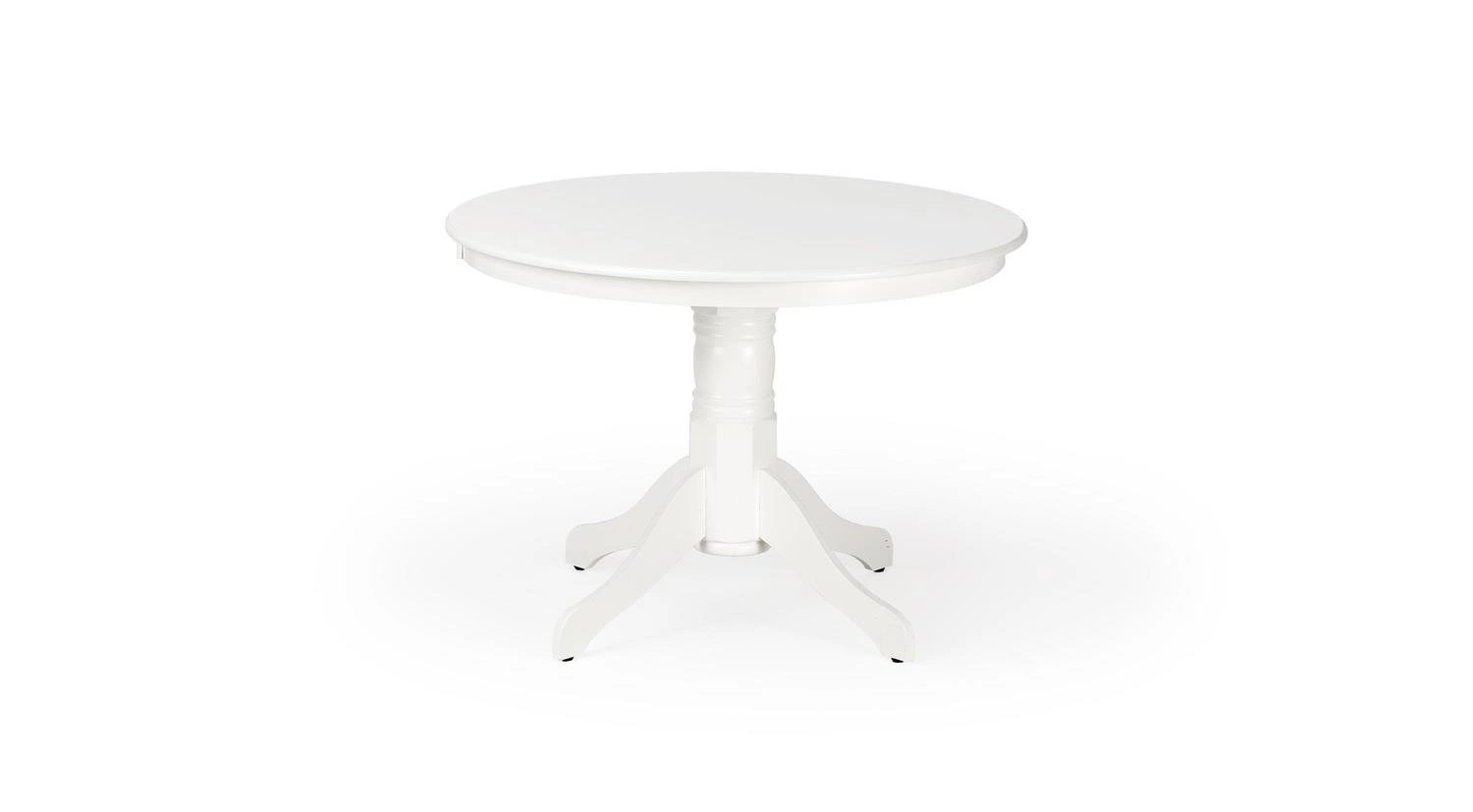 Blat wykonany jest z MDF-u lakierowanego, co zapewnia nie tylko wyjątkowy wygląd, ale również trwałość i łatwość w utrzymaniu czystości. Nogi stołu wykonane są z litego drewna kauczukowego, co gwarantuje stabilność i solidność konstrukcji. Stół jest w kolorze białym, co dodaje mu elegancji i sprawia, że pasuje do każdego wnętrza. Jego wysokość wynosi 75 cm, co zapewnia wygodne siedzenie przy stole.