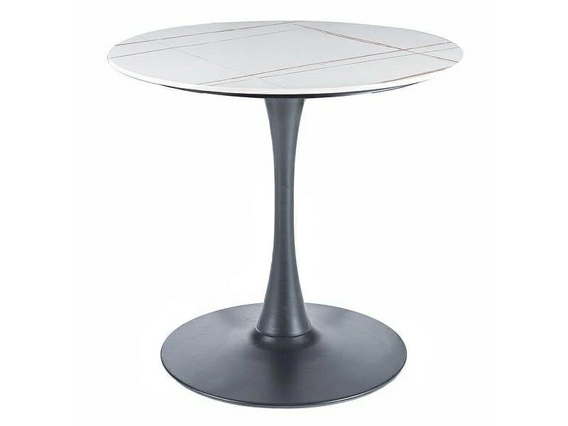 Stół Esmeralda 80cm marmur/czarny Stół Esmeralda o średnicy 80 cm to wyjątkowy mebel, który łączy w sobie funkcjonalność i designerski styl glamour. Posiada czarny, metalowy stelaż, który nadaje stołowi solidności, tworząc zarazem harmonijny kontrast z okrągłym blatem, wykonanym z ceramiki imitującej efekt marmuru. Idealny do przestrzeni jadalnianych lub salonu, to nie tylko miejsce, gdzie spożywasz posiłki, ale także designerski akcent, który przyciąga wzrok i nadaje wnętrzu nowoczesnego charakteru. Mebel jest niezwykle solidny, co sprawia, że stanowi stabilną i trwałą bazę dla różnorodnych spotkań przy stole. Ceramika i metalowa noga sprawiają, że stół nie tylko prezentuje się stylowo, ale także jest niezwykle trwały i wytrzymały. To mebel, który posłuży Ci na lata, zachowując swój designerski urok. Przygotuj się na mądry wybór! Waży tylko 33kg. Idealny do przestrzeni jadalnianych lub salonu, gwarantuje stabilność i trwałość. Wykonanie z ceramiki i metalu sprawia, że stół jest nie tylko designerski, ale również trwały i wytrzymały na lata.