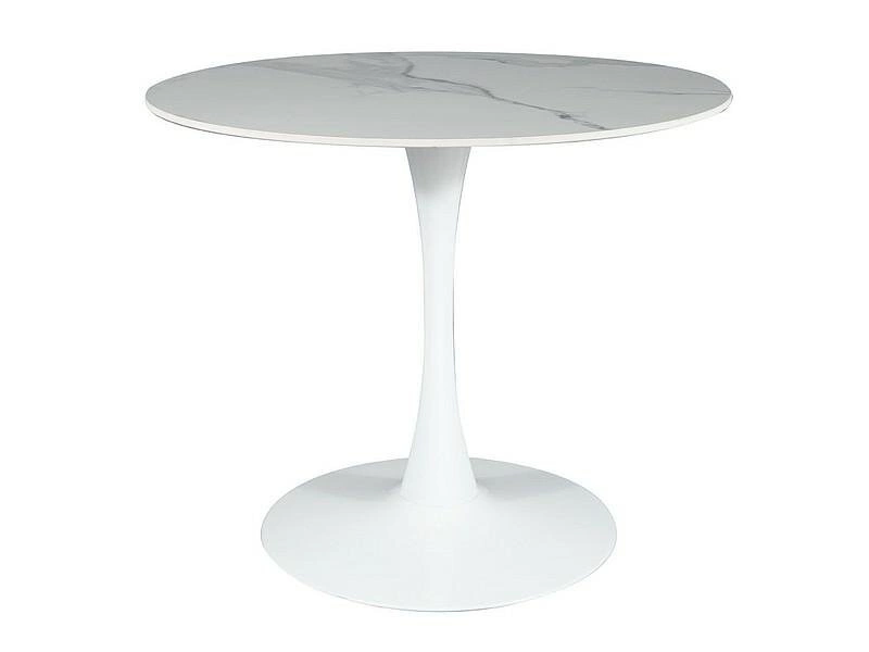 Stół Esmeralda 90cm marmur/biały Stół Esmeralda o średnicy 90 cm to wyjątkowy mebel, który łączy w sobie funkcjonalność i designerski styl glamour. Posiada biały, metalowy stelaż, który nadaje stołowi solidności, tworząc zarazem harmonijny kontrast z okrągłym blatem, wykonanym z ceramiki imitującej efekt marmuru. Idealny do przestrzeni jadalnianych lub salonu, to nie tylko miejsce, gdzie spożywasz posiłki, ale także designerski akcent, który przyciąga wzrok i nadaje wnętrzu nowoczesnego charakteru. Mebel jest niezwykle solidny, co sprawia, że stanowi stabilną i trwałą bazę dla różnorodnych spotkań przy stole. Ceramika i metalowa noga sprawiają, że stół nie tylko prezentuje się stylowo, ale także jest niezwykle trwały i wytrzymały. To mebel, który posłuży Ci na lata, zachowując swój designerski urok. Przygotuj się na mądry wybór! Waży tylko 33kg. Idealny do przestrzeni jadalnianych lub salonu, gwarantuje stabilność i trwałość. Wykonanie z ceramiki i metalu sprawia, że stół jest nie tylko designerski, ale również trwały i wytrzymały na lata.