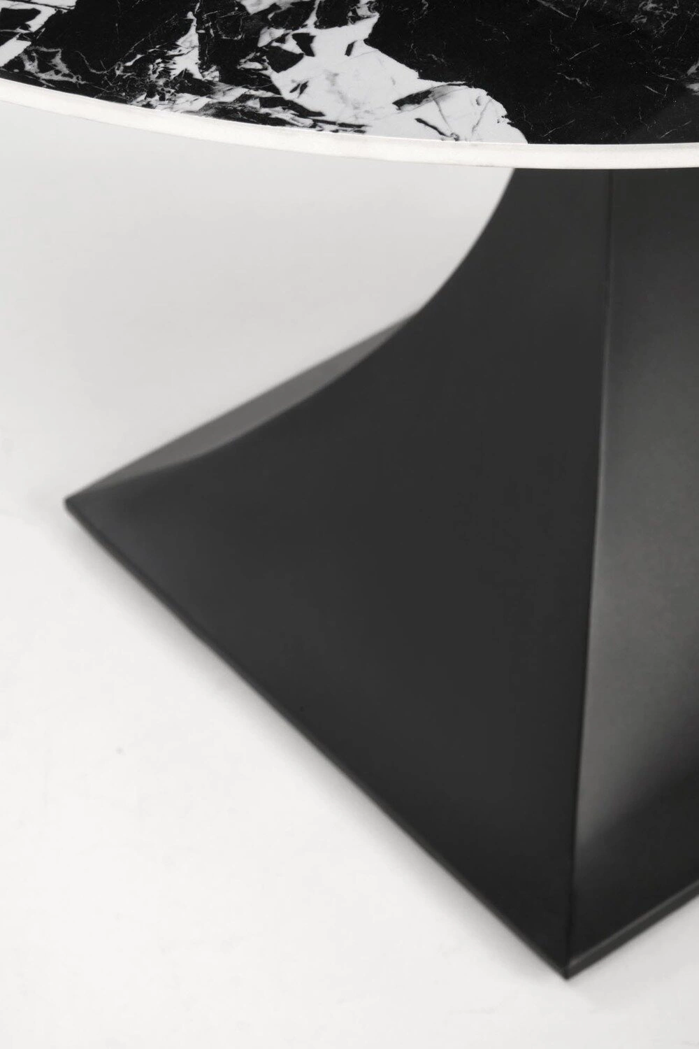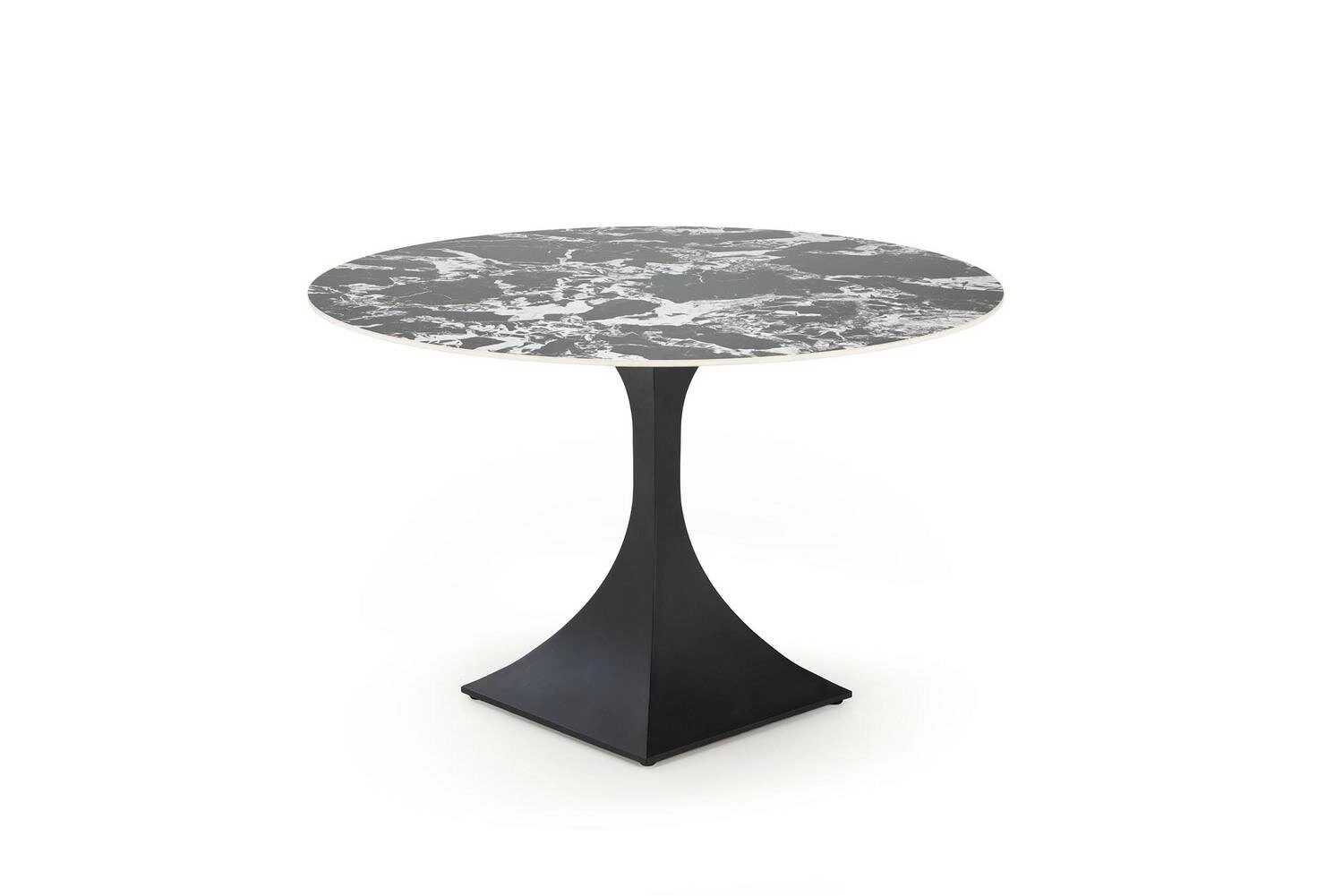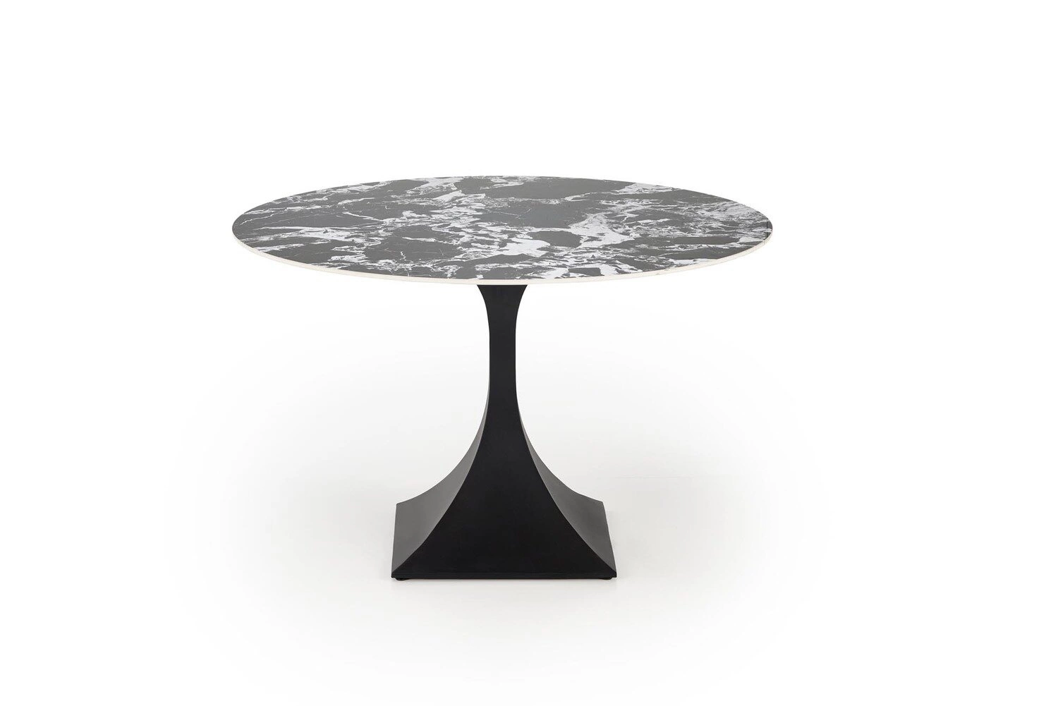 Stół okrągły Gives w wykończeniu imitującym czarny marmur to znakomity wybór dla osób ceniących elegancję i styl. Jego solidna, stalowa noga o kieliszkowatej formie nie tylko zapewnia stabilność, ale także wnosi finezyjny akcent do każdego wnętrza. Dzięki temu, stół harmonijnie łączy w sobie praktyczność z estetyką, stając się centralnym punktem w jadalni lub salonie.