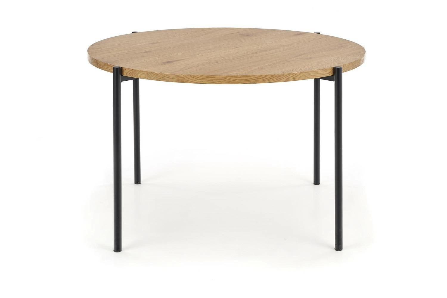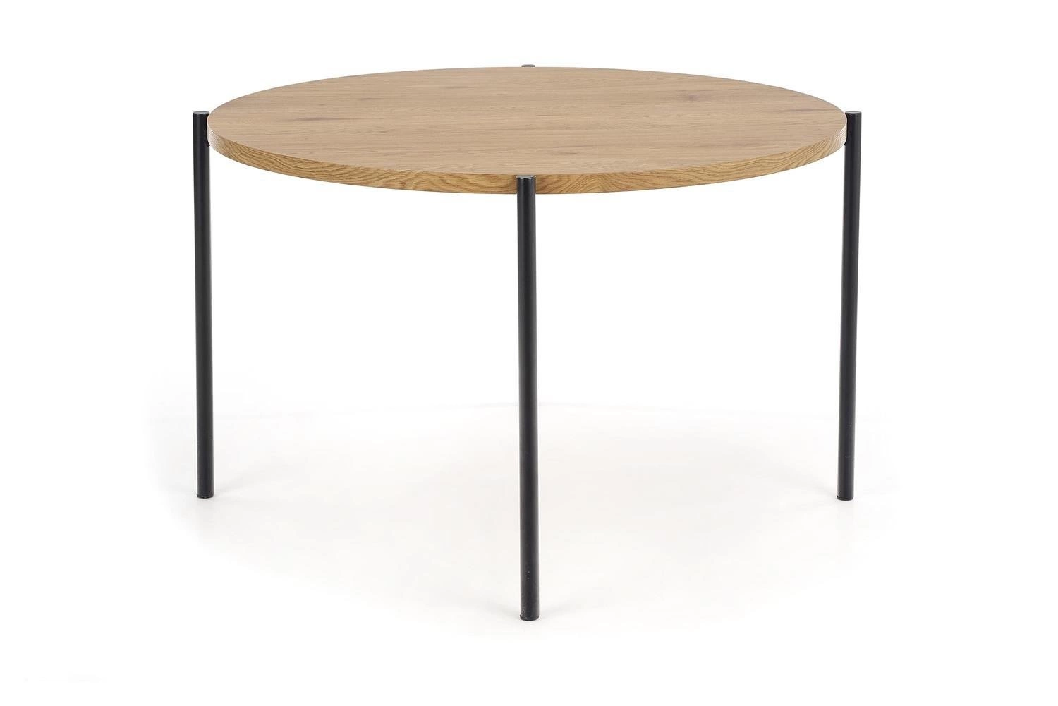 Stół okrągły Moris marki Intesi to propozycja dla osób ceniących funkcjonalność i oryginalność we wnętrzu. Okrągły blat o średnicy 120 cm w ciepłym odcieniu złotego dębu oraz solidne czarne nogi to połączenie, które doskonale wpisuje się w loftowy styl jadalni. Wysokość stołu wynosząca 76 cm zapewnia wygodę użytkowania zarówno podczas codziennych posiłków, jak i rodzinnych spotkań.