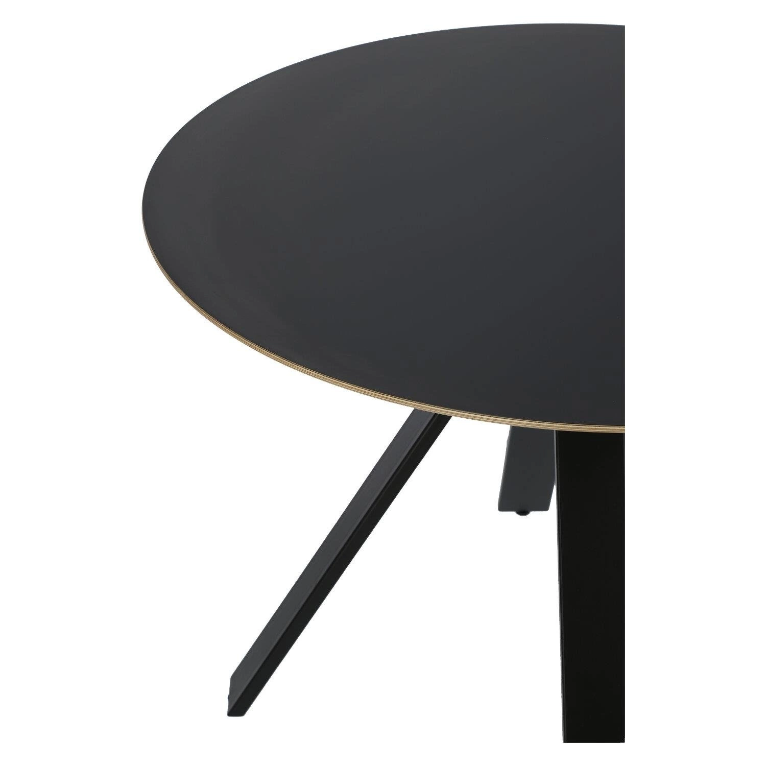 Stół Mezzanotte to oryginalność i elegancja w jednym. Wykonany z wysokiej jakości sklejki liściastej stół jest nie tylko wytrzymały, ale również niezwykle lekki. Odporny na wilgoć materiał blatu został dodatkowo pokryty czarnym laminatem. Na ciemnym tle ciekawie odcinają się ścięte brzegi blatu, dodając do tego projektu naturalnego uroku. Postawę okrągłego stołu tworzą rozkładające się koliście czarne nogi w kształcie smukłych belek. Nakładki nałożone na spód podstawy gwarantują ochronę posadzki przed zarysowaniem.